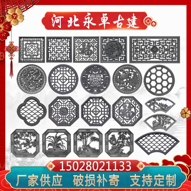 Антикварный китайский полый кирпичный кирпичный резной полый вентилятор в форме кирпичного кирпича резные настенные цементные окна цветочная слива орхидея бамбука хризантема настраиваемая роспись роспись