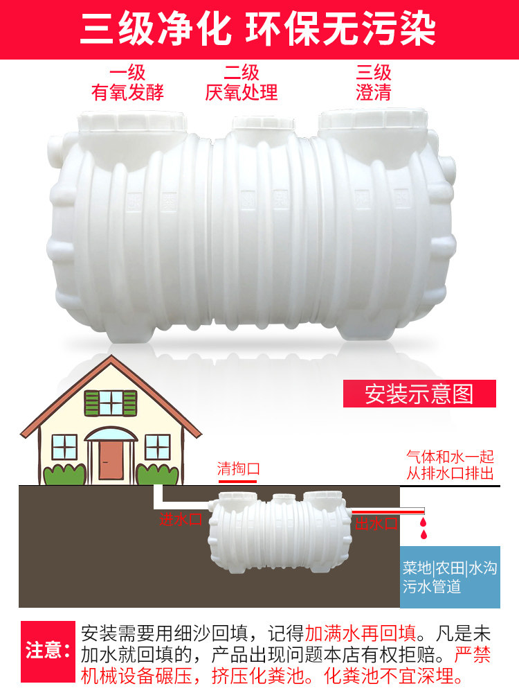 Северный танк Домохозяйный треугольный септик Новый сельский туалет