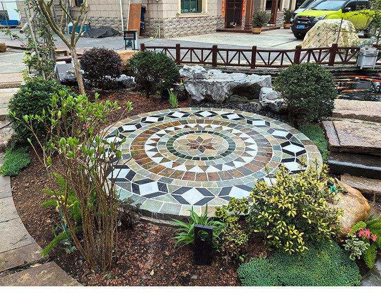 Гуанси Чунцзуо садовая напольная плитка из натурального камня, вилла, двор, открытый пол, нескользящая каменная мозаика, круглая комната