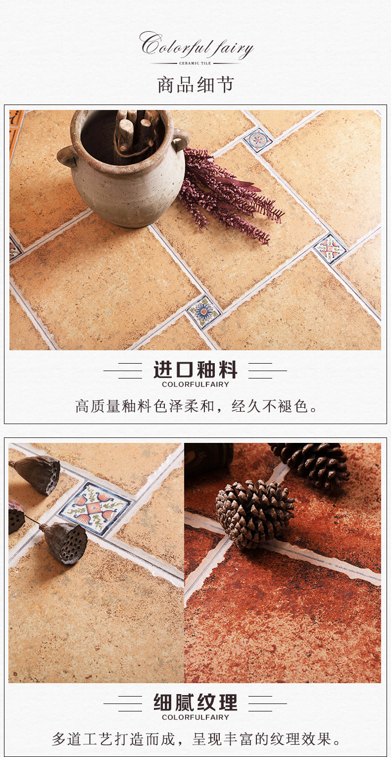 Красочный эльф американский сельский стиль антикварного кирпичного кухонного балкона плитка плитка плитка на пол, гостиная 330