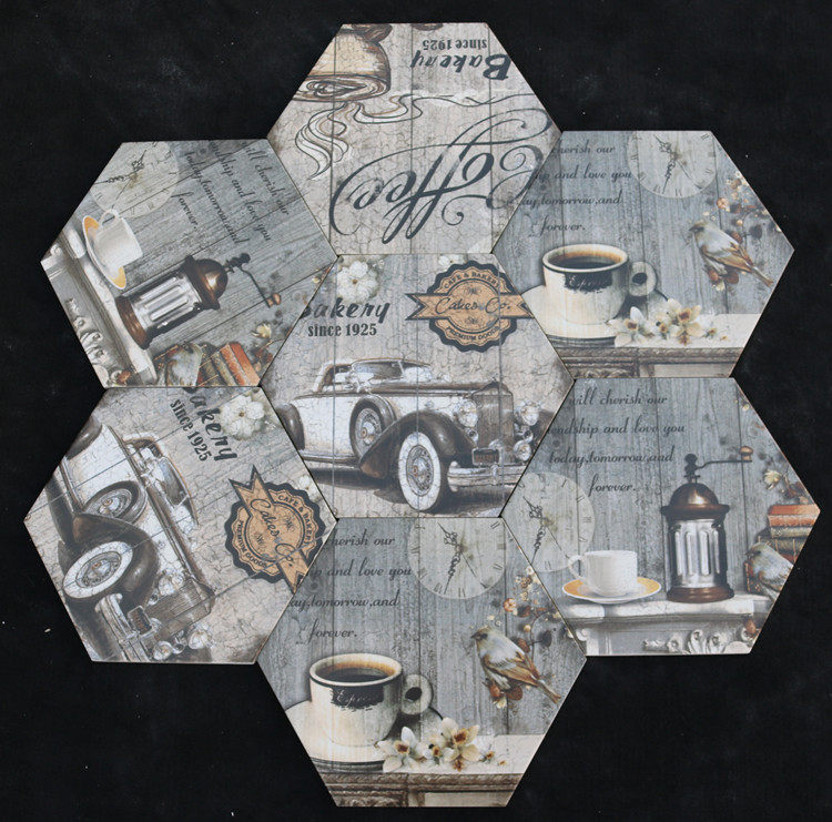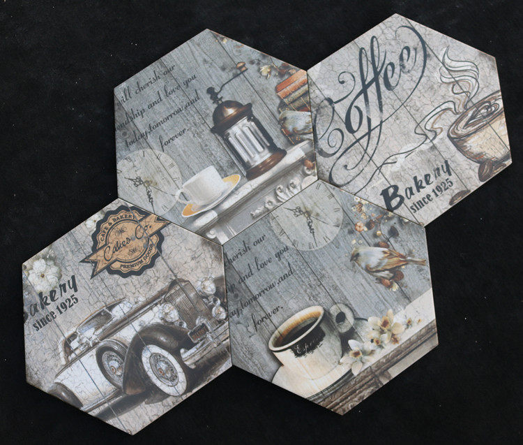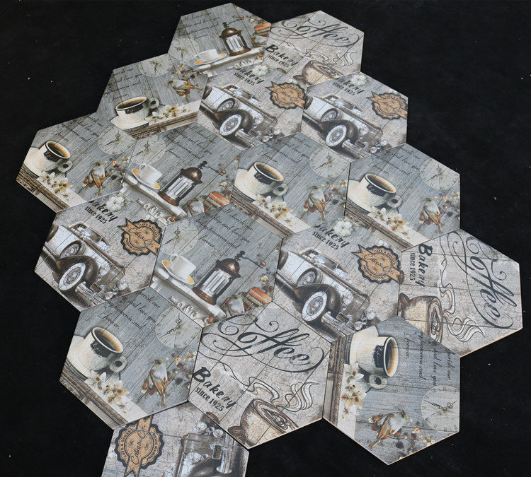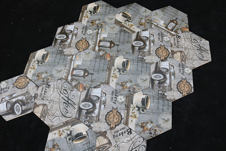 Европейская стиль ретро -плитка 260*300 шестиугольный кирпичный кирпичный напольный плитка цементная кирпичная газета кирпич