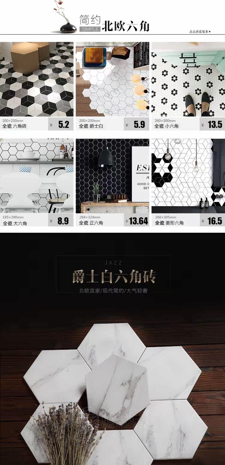 Nordic Ikea All -Porcelain Matte Jazz White Hexagon Brick Kitchen Living Room стена плитка напольная плитка простая плитка