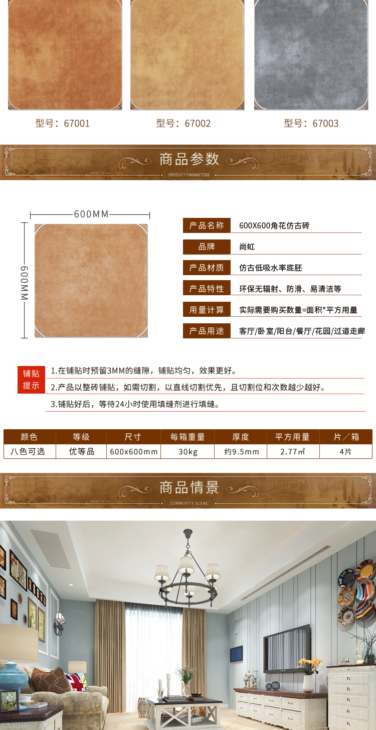Американская пастырская средиземноморская плитка 600x6600 Античтная плитка с угловой цветочной конфеткой.
