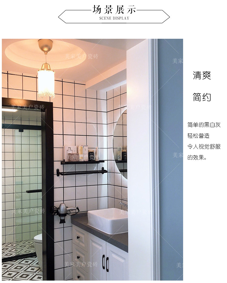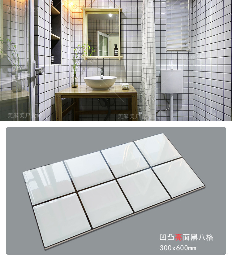 Северная с маленьким белым кирпичным кухонным туалетным настенным плитками Простая плитка квадратная блокара сетка черная линия 3060