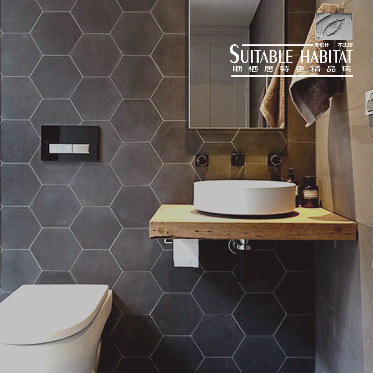 Северная ретро -шестиугольная плитка матовая серая плитка туалетная туалетная туалетная туалетная шестиугольная плитка