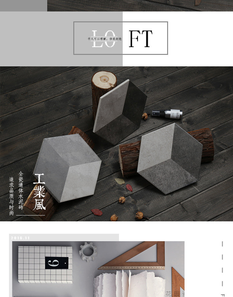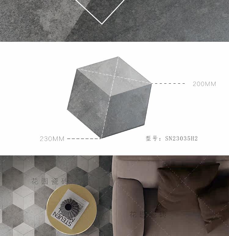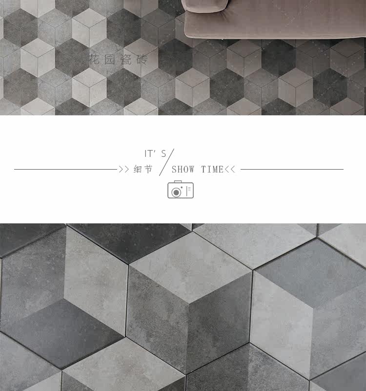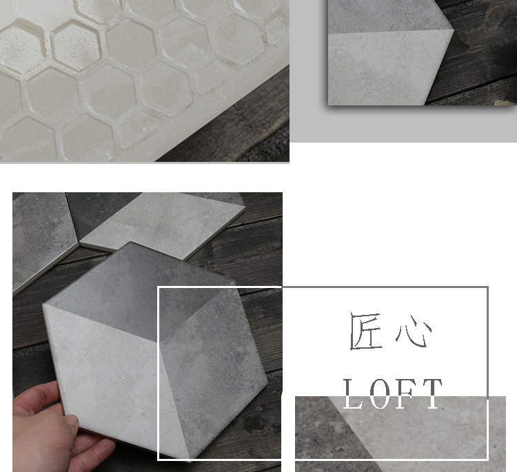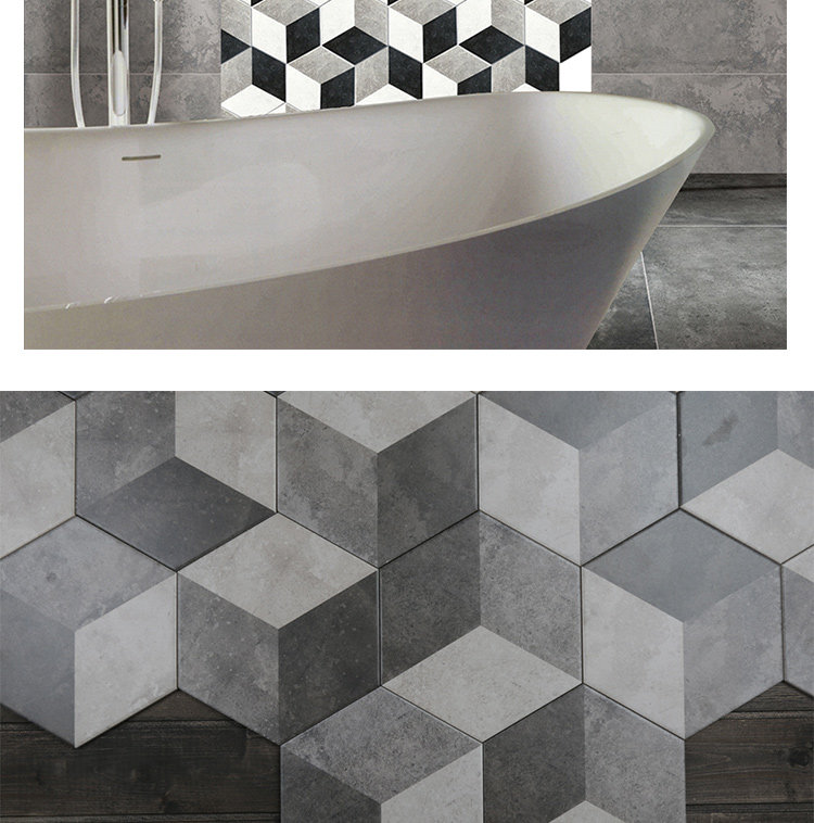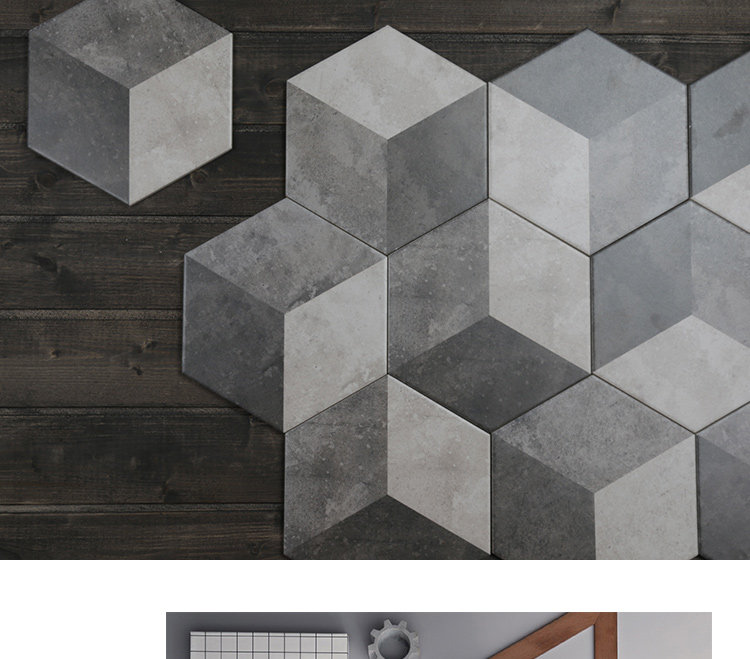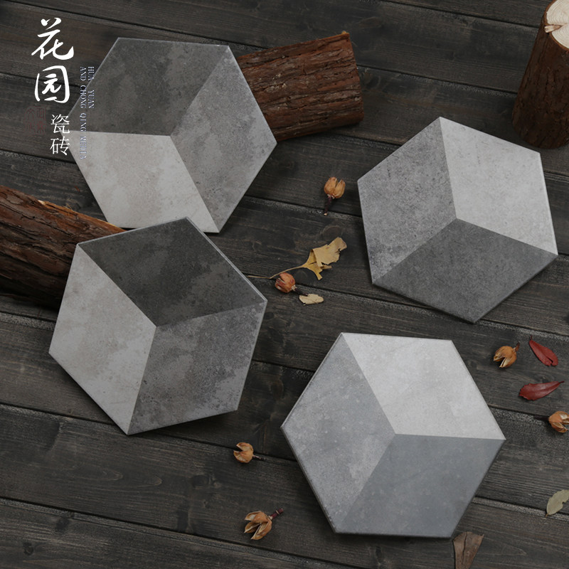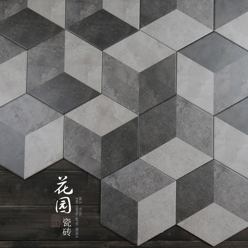 Черно -белый цементный цвет Трехлочный шестиугольный кирпичный кирпичный кирпич простой американский сшивающий маленький шестиугольный кирпичный анти -скользкий антикварный кирпич 200*230