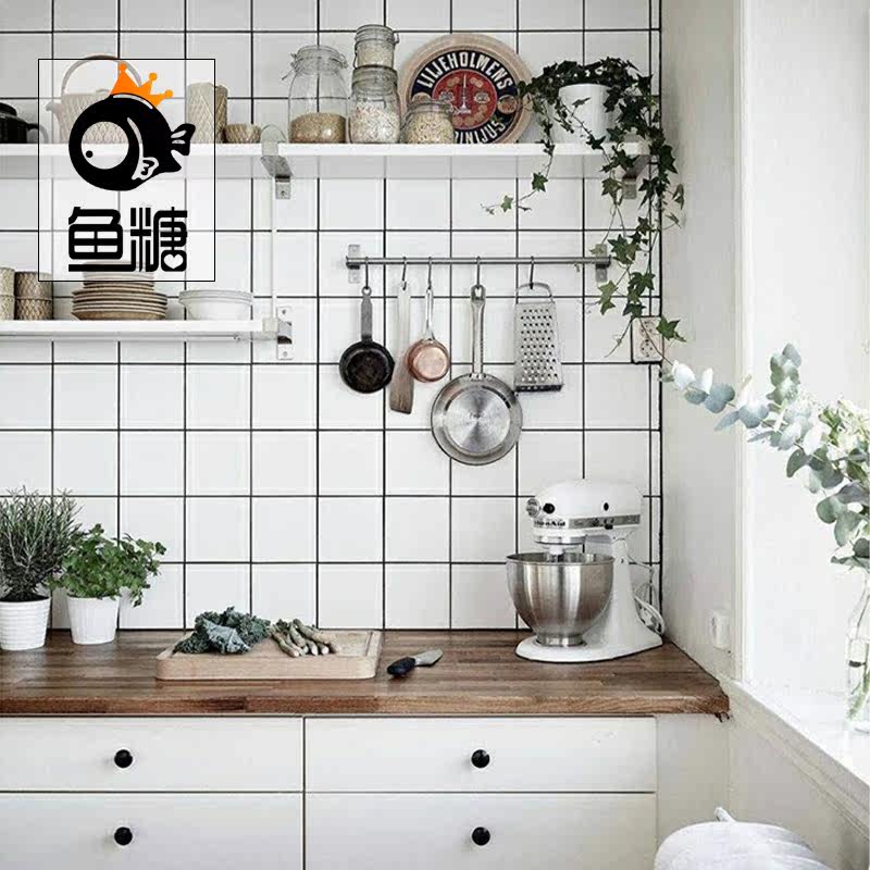 Современная простая легкая клетчатая клетчатая белая метро черная линия кирпичная кирпичная кухонная туалетная плитка 300600