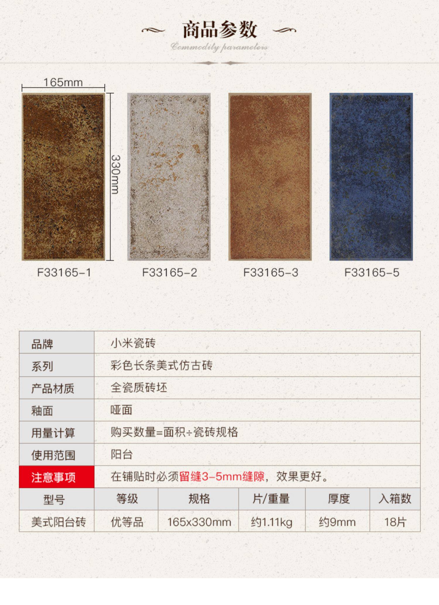 Xiaomi Tile Американский антикварный кирпич 165x330 Средиземноморский балкон -туалетный туалетный кухонный настенный плитка плитка на пол F33165