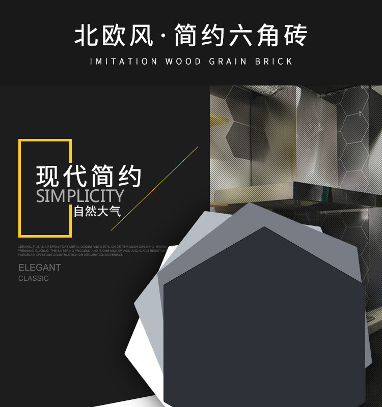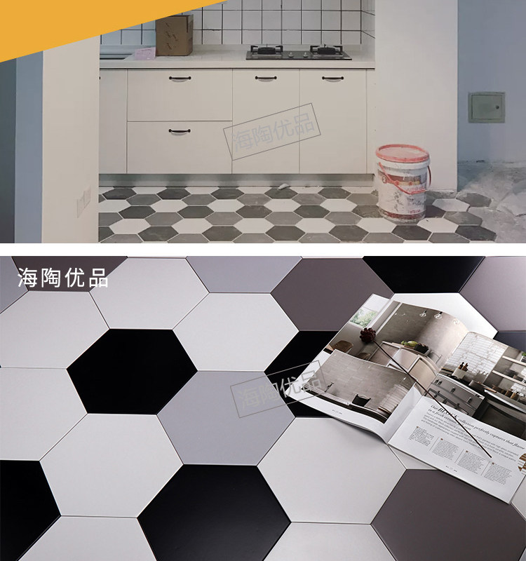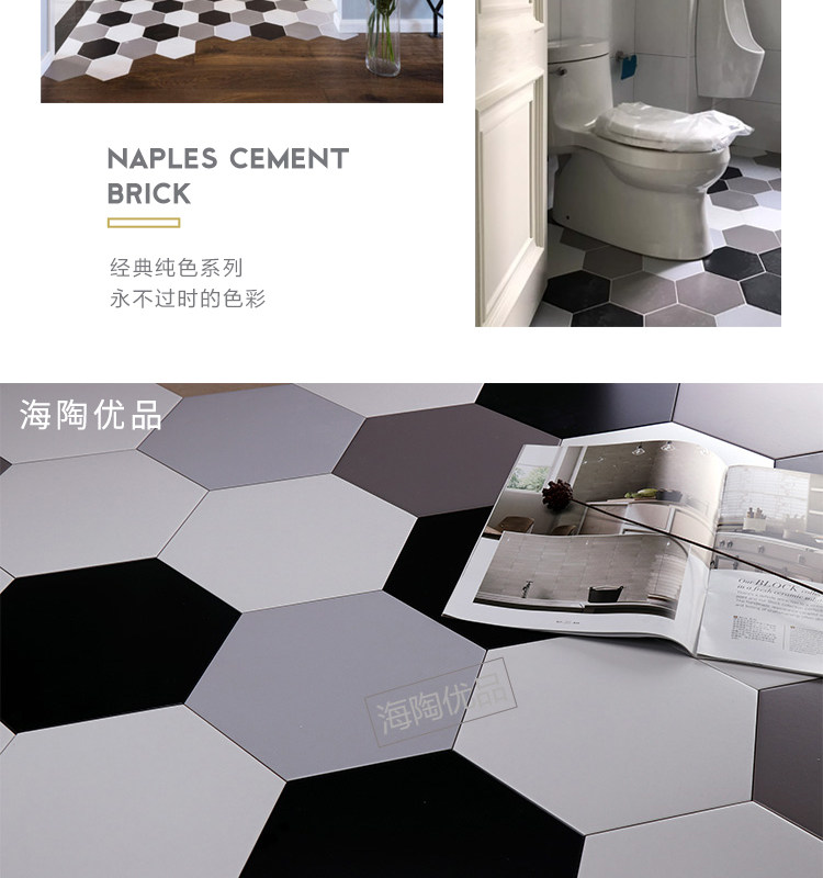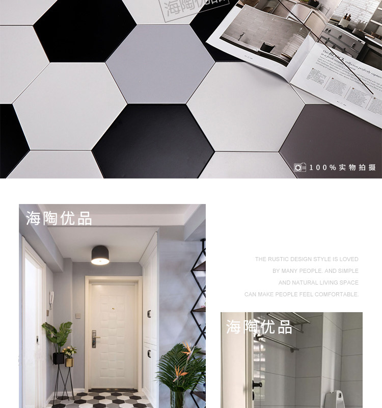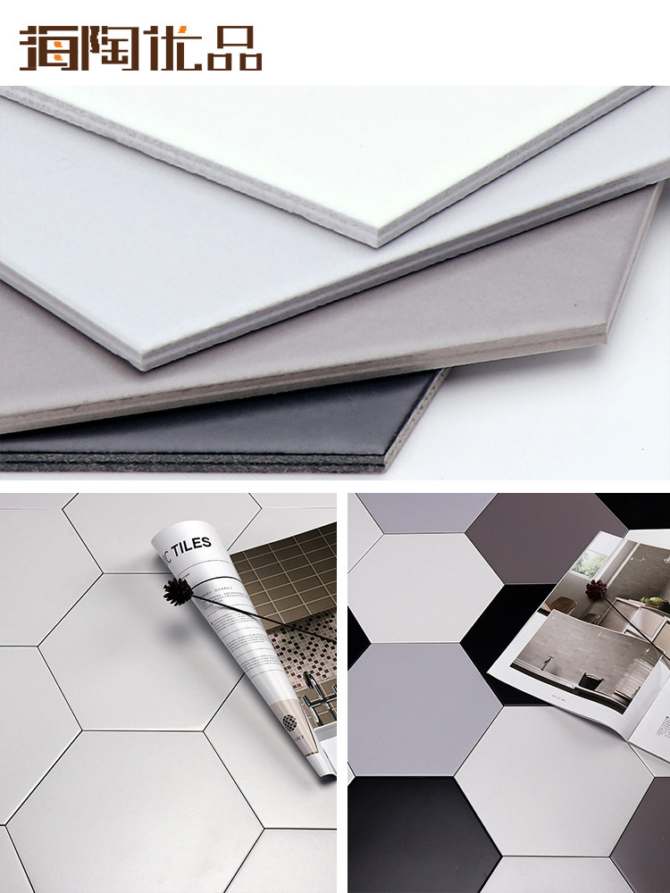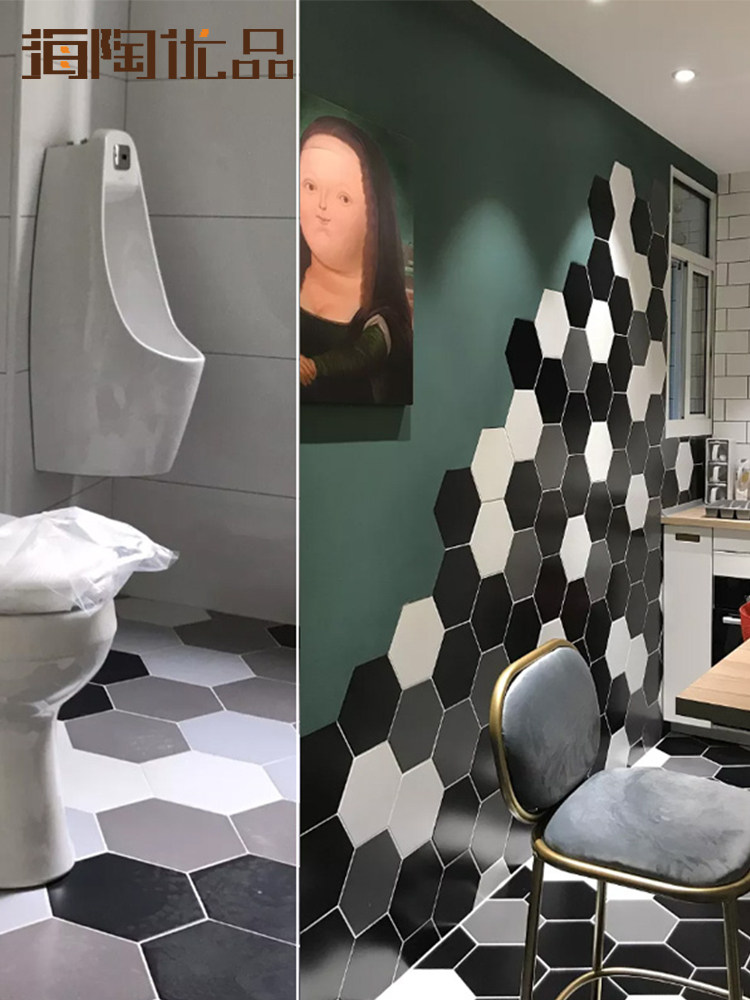 Черно -белый серо -серой шестиугольный кирпичный кирпич 260x300 шестиугольная плитка матовая антикварная кирпичная туалет