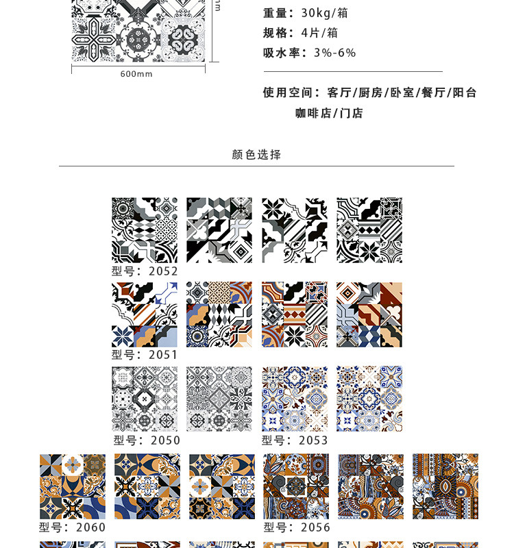 Ретро европейская фоновая стена тибетская кухонная балкона плитка плитка ресторан Antique Tile 600x600