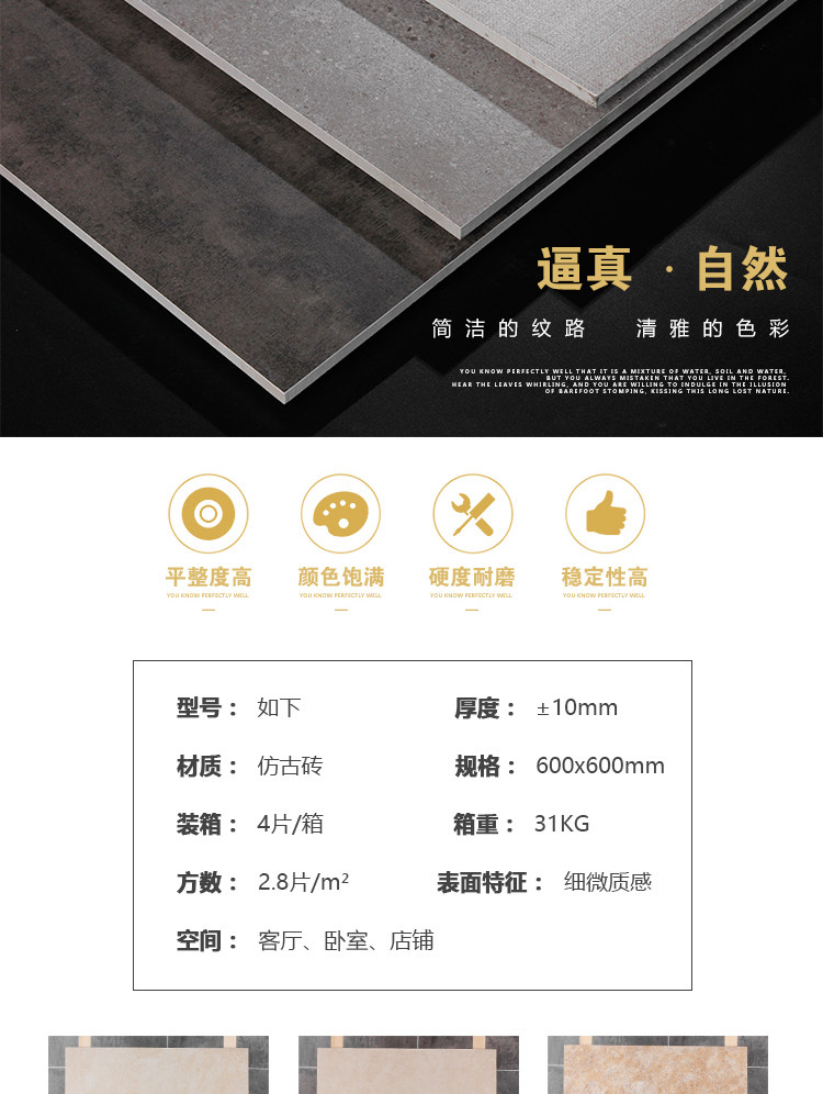 Серый антикварный кирпичный кирпич 600x600 цементная плитка гостиная спальня Балкон Банк -Слип и Износ