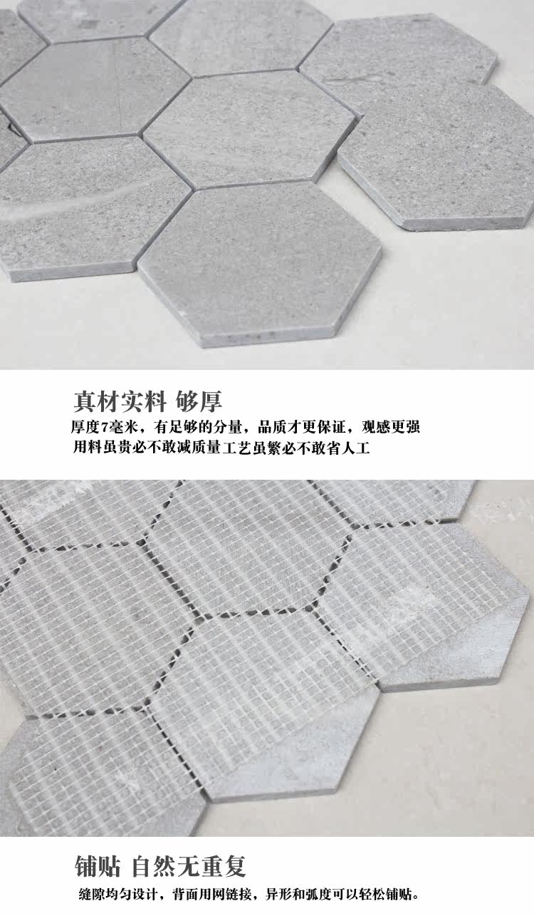 Северная шестиугольная джазовая джазовая серая плитка туалетная туалетная мраморная кухня гексагональная мозаика анти -скользящая плитка