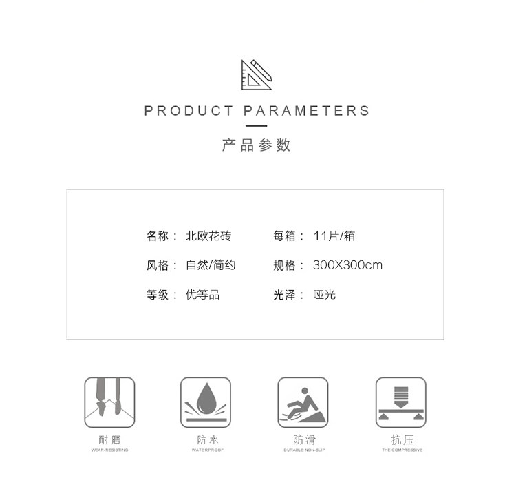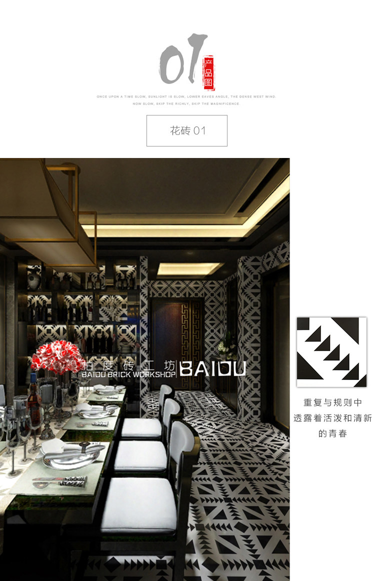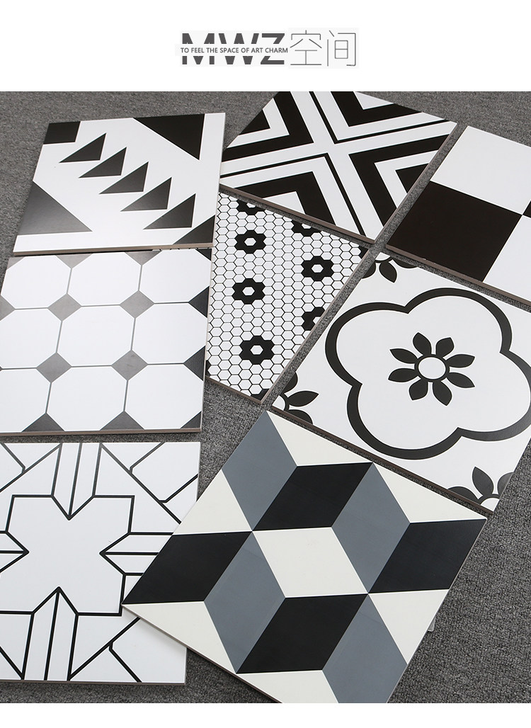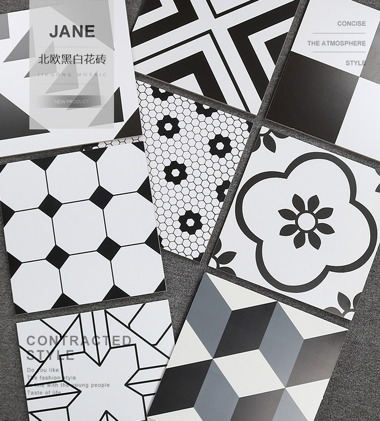 Bai du Nordic Черно -белая плитка плитка ресторан работники институциональная кирпичная кухонная балкона балконы Антислоп плитка 300