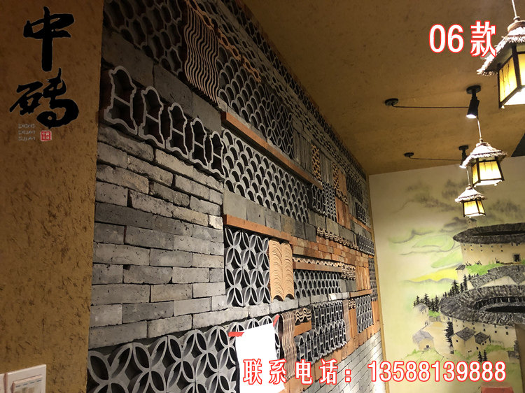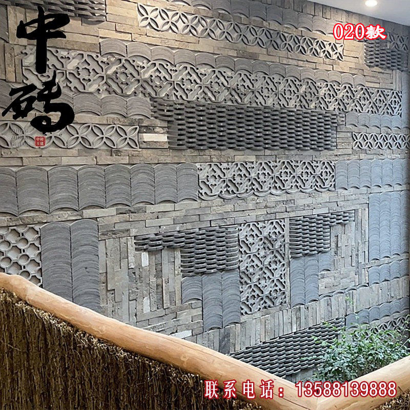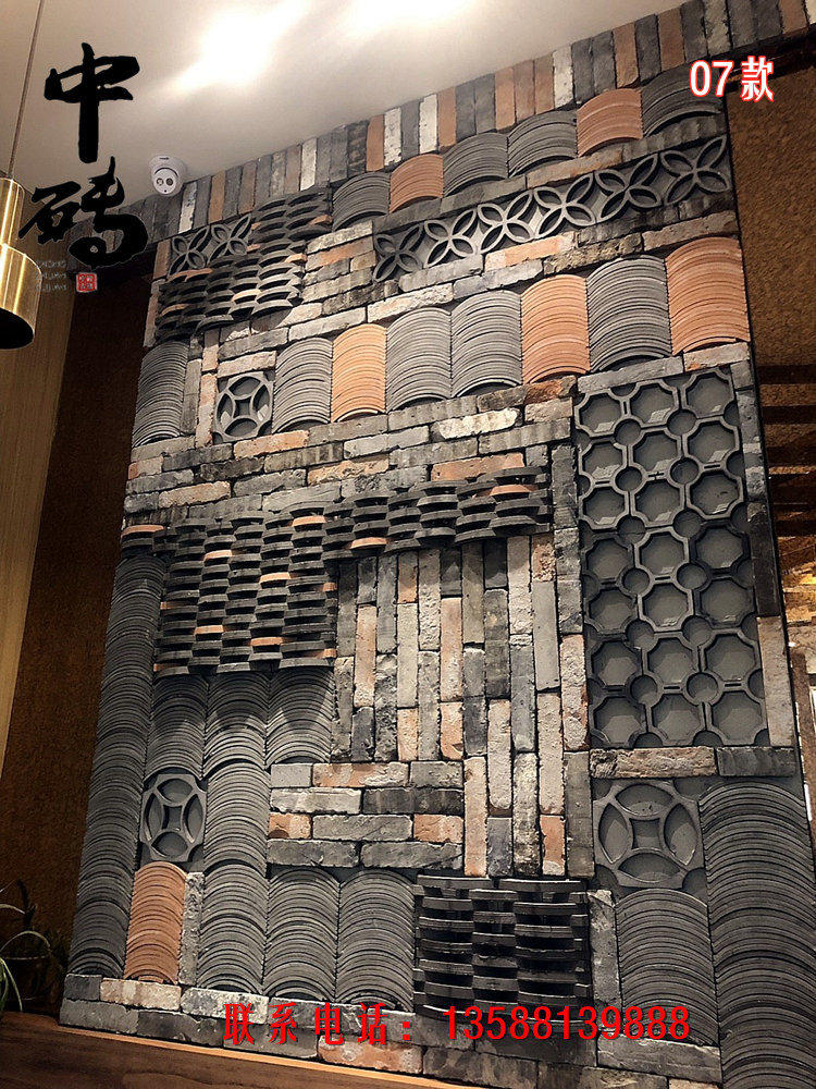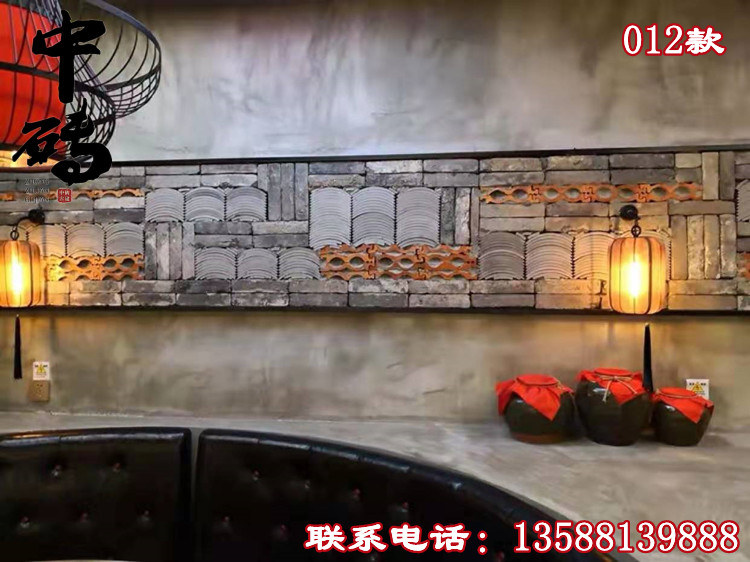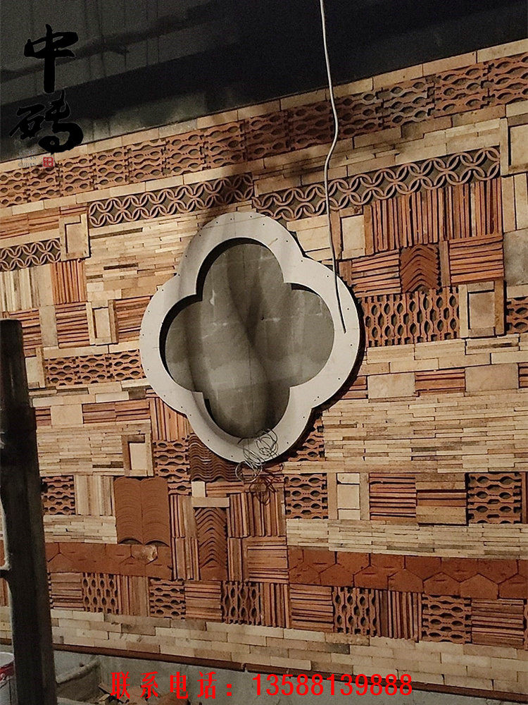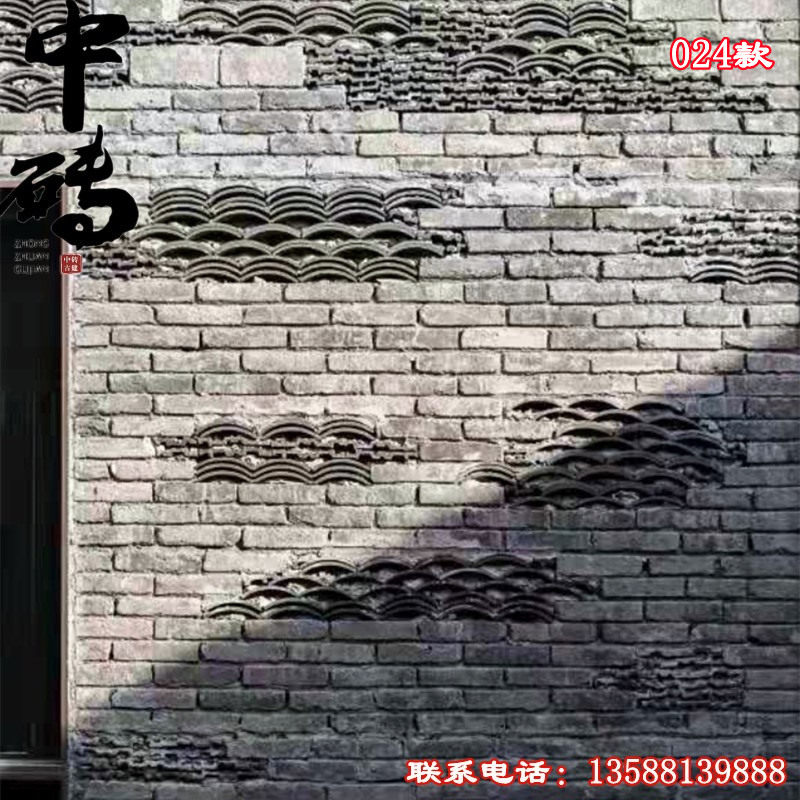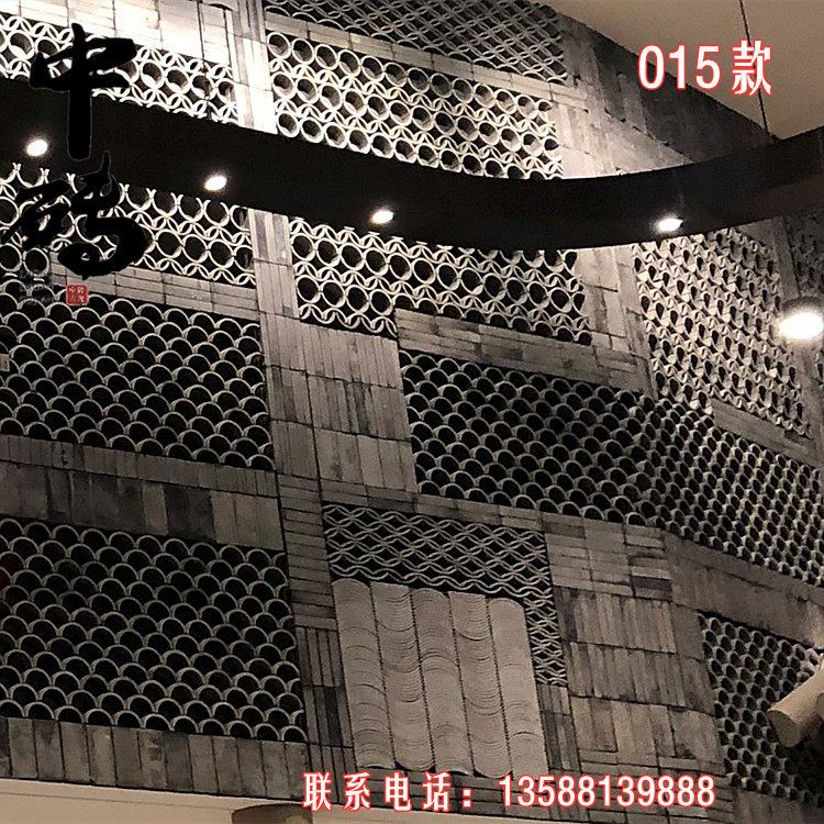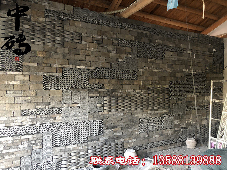 Китайский стиль ретро зеленый кирпичный кирпичный кирпичный фон стена сетка черная чайханя Homestay Hotel Creative Modeling Art Huthing Plain Wall стена