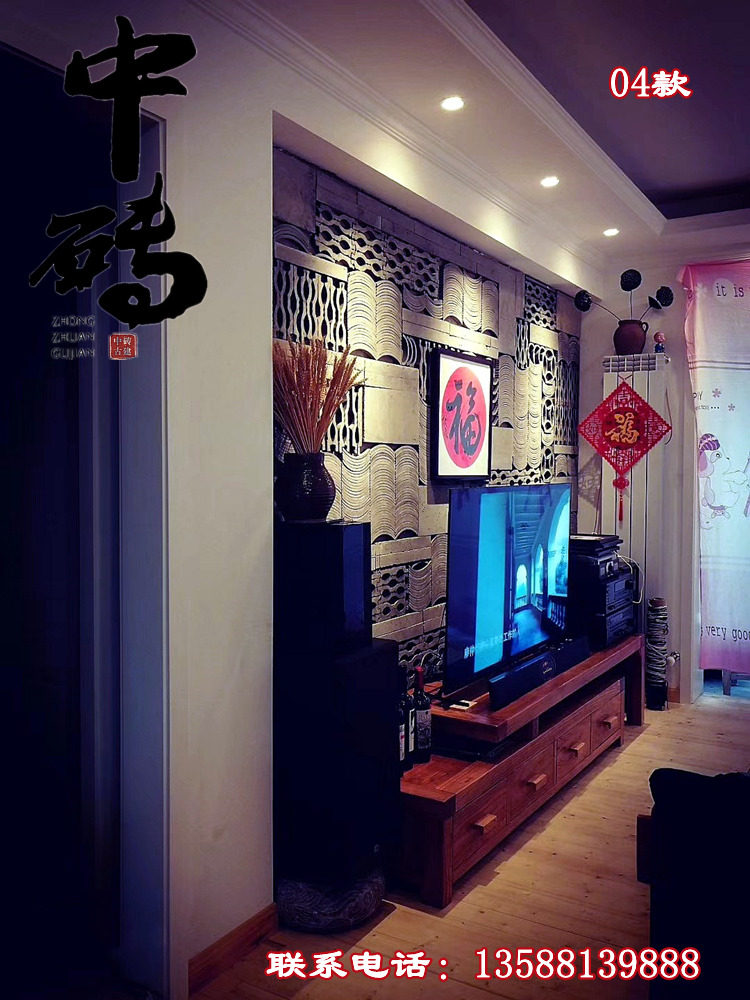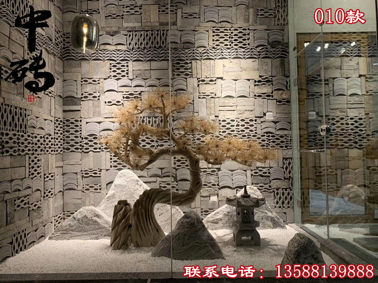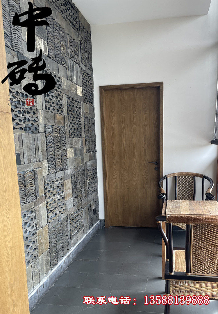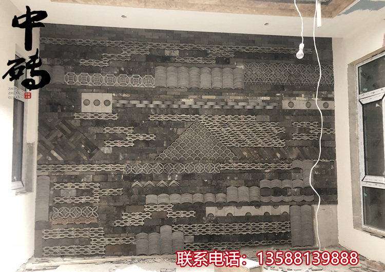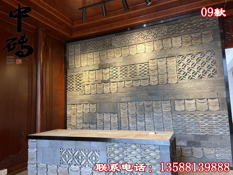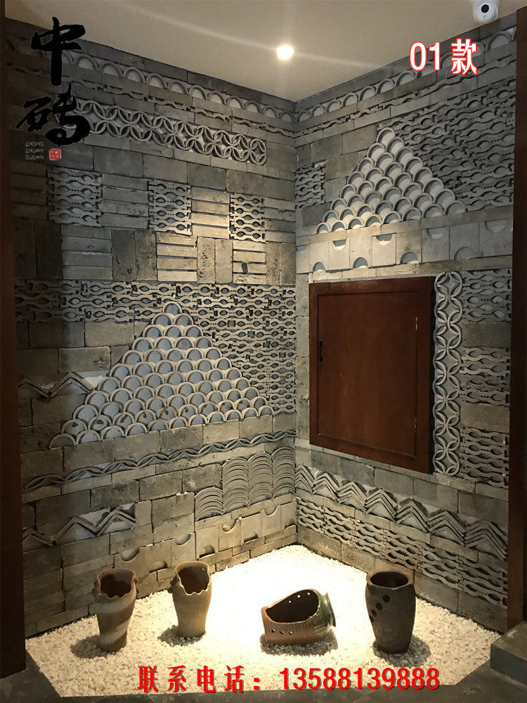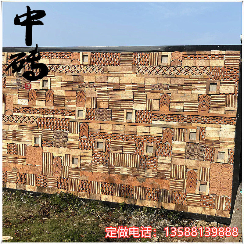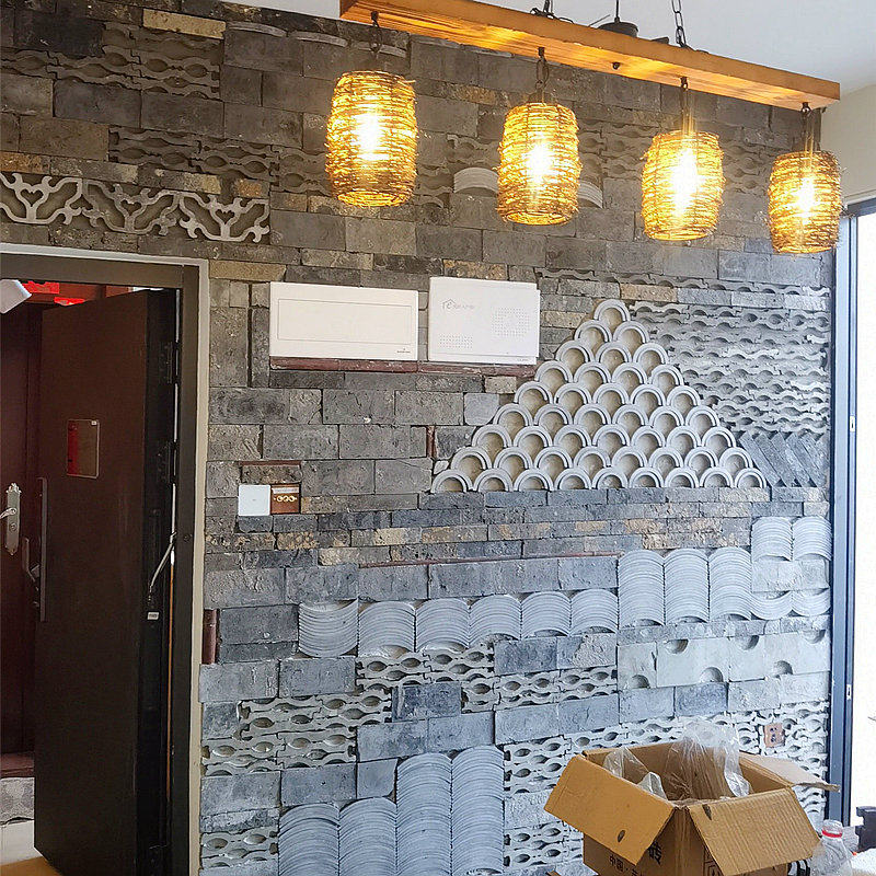 Китайский стиль ретро зеленый кирпичный кирпичный кирпичный фон стена сетка черная чайханя Homestay Hotel Creative Modeling Art Huthing Plain Wall стена