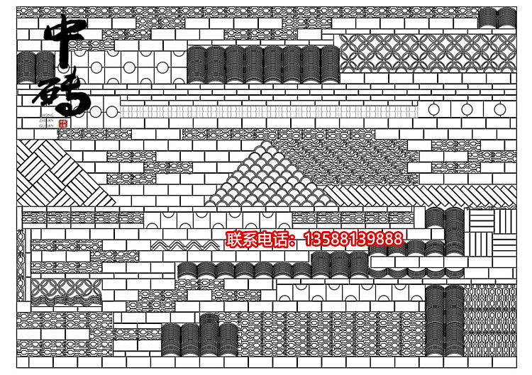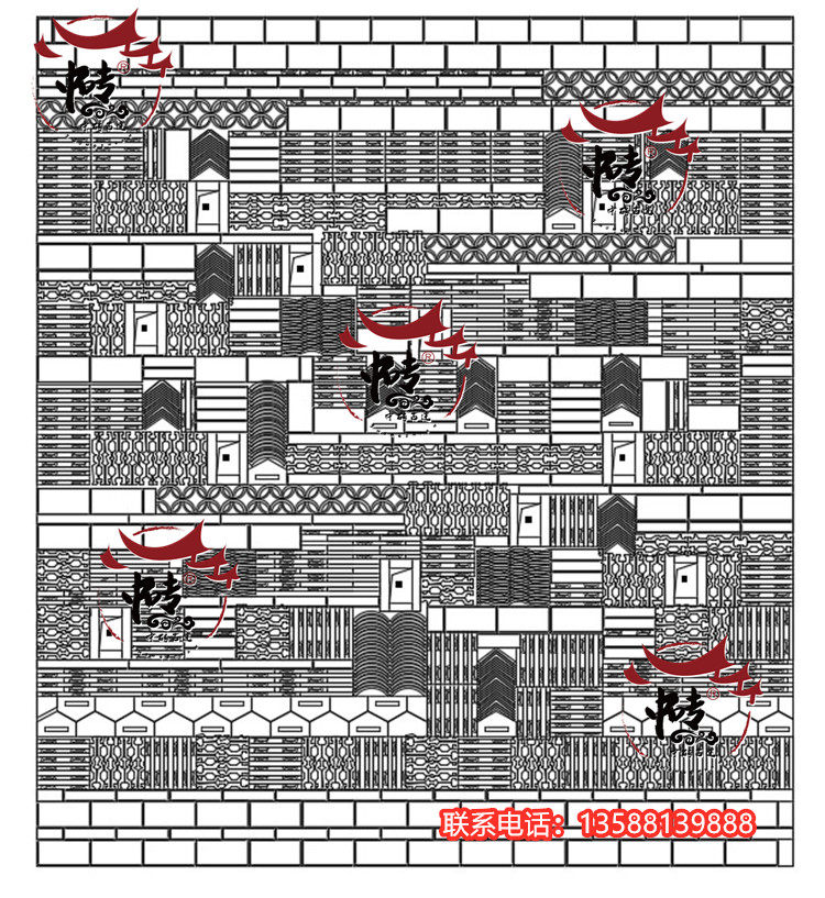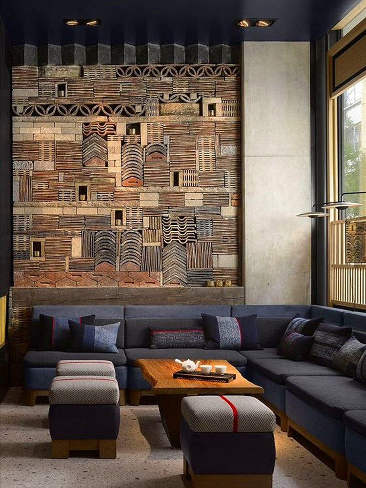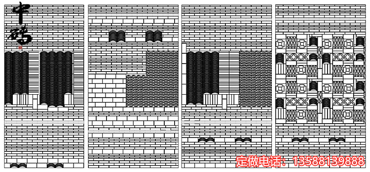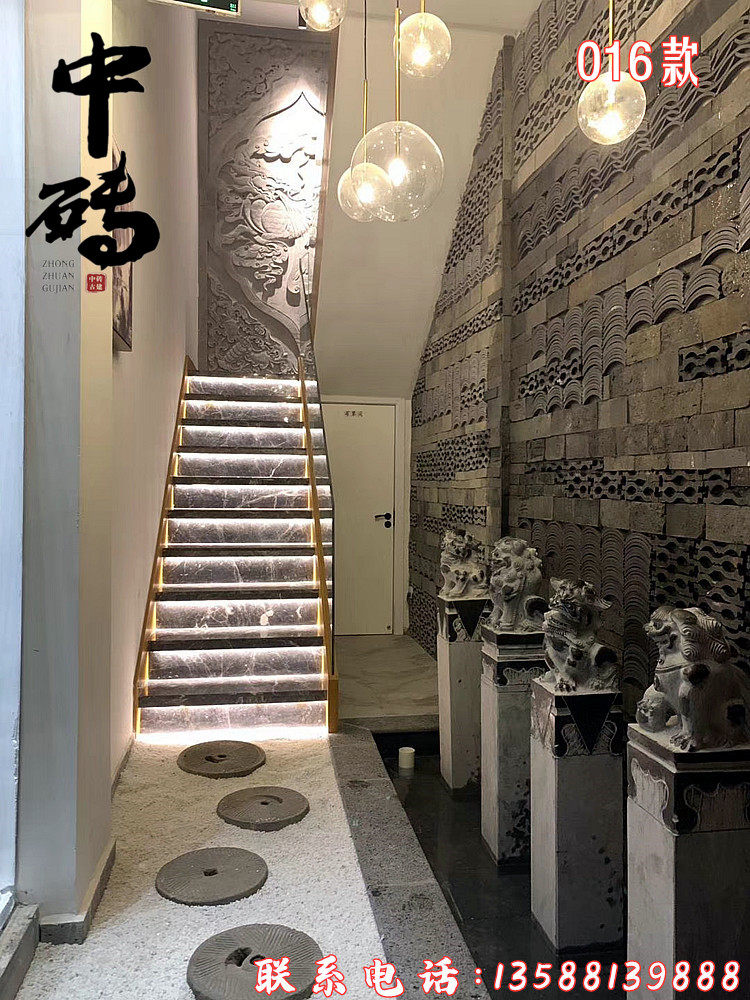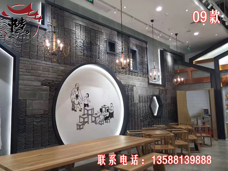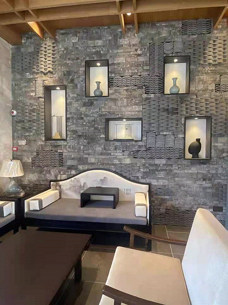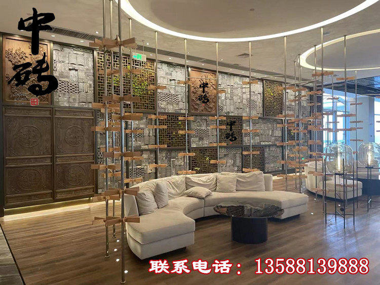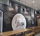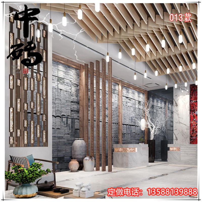 Китайский стиль ретро зеленый кирпичный кирпичный кирпичный фон стена сетка черная чайханя Homestay Hotel Creative Modeling Art Huthing Plain Wall стена