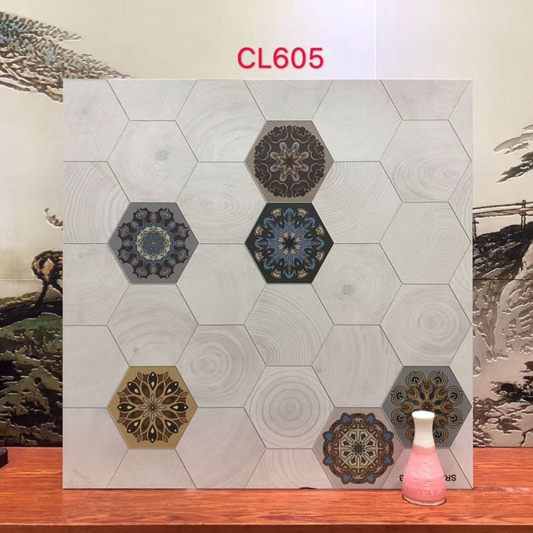Европейская в стиле гостиной Фоны Стены Черно -белая цветочная плитка не -скользящая цементная плитка для омолаживания антикварной плитки 600x600