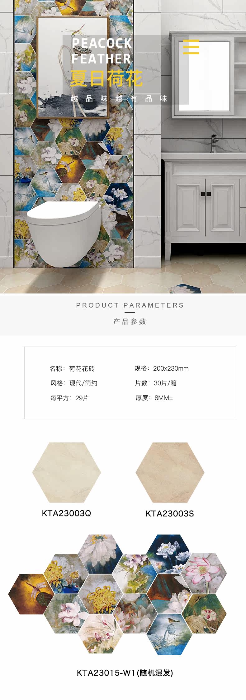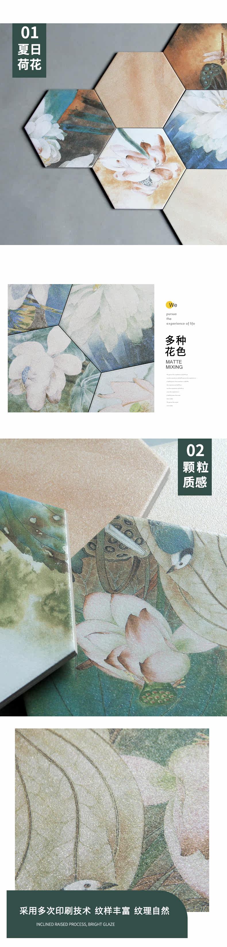 Современный простой лотос шестиугольный кирпичный кирпич 200x230 кухня и стена ванной комнаты и напольные плитки фона стены балкон без скольжения и износа