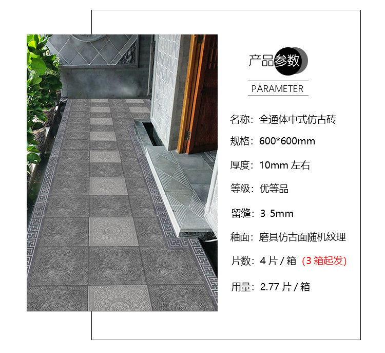 Китайский двор садовой пол плитка 600x600 открытый двор анти -скользящий пол плитка виллы террасы анти -безрешительные плитки пола