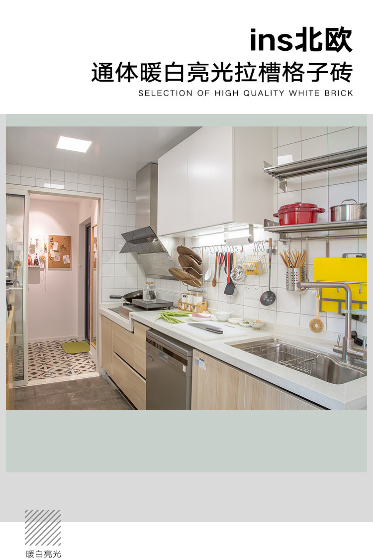 Яркий свет маленький белый кирпичный кирпичный канавка в ванной комнате ванная комната полная фарфоровая пропуск тел теплый белый японский стиль северная кухонная стена кирпич