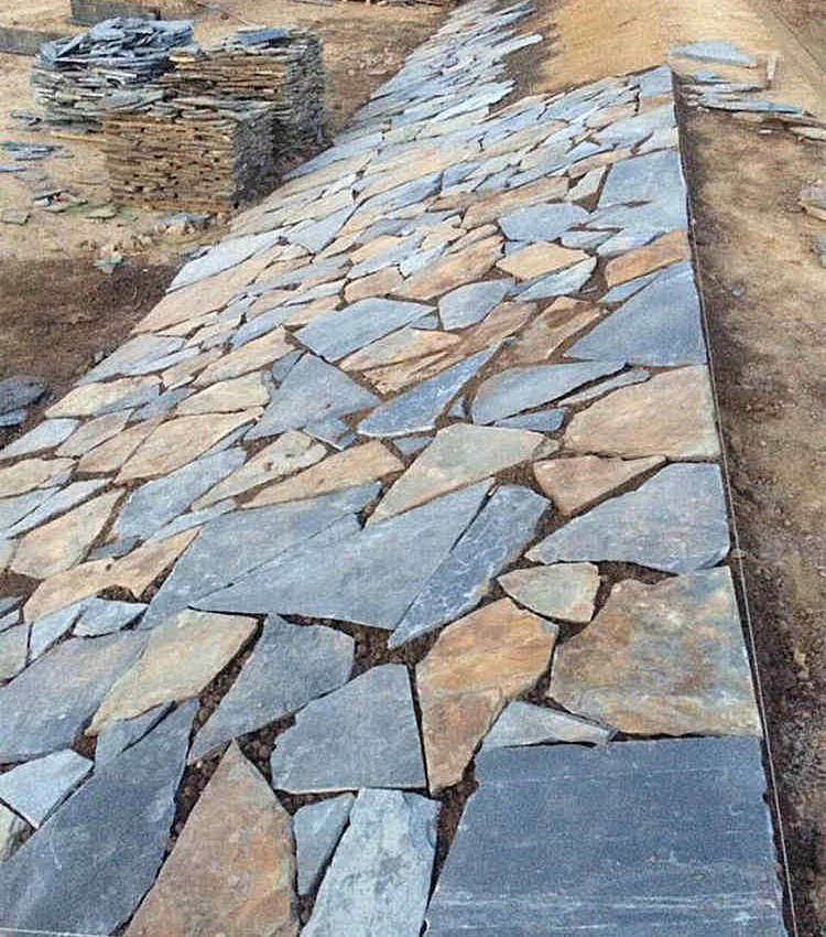 Натуральные голубые каменные плиты являются нерегулярно случайным образом случайным образом слябовать на открытом воздухе антикварные кирпичи включают в себя культурные каменные плитки на пол