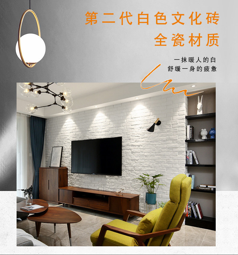 碧恒 Вся -Порсина белая культура кирпичная плитка гостиная телевизорная плит