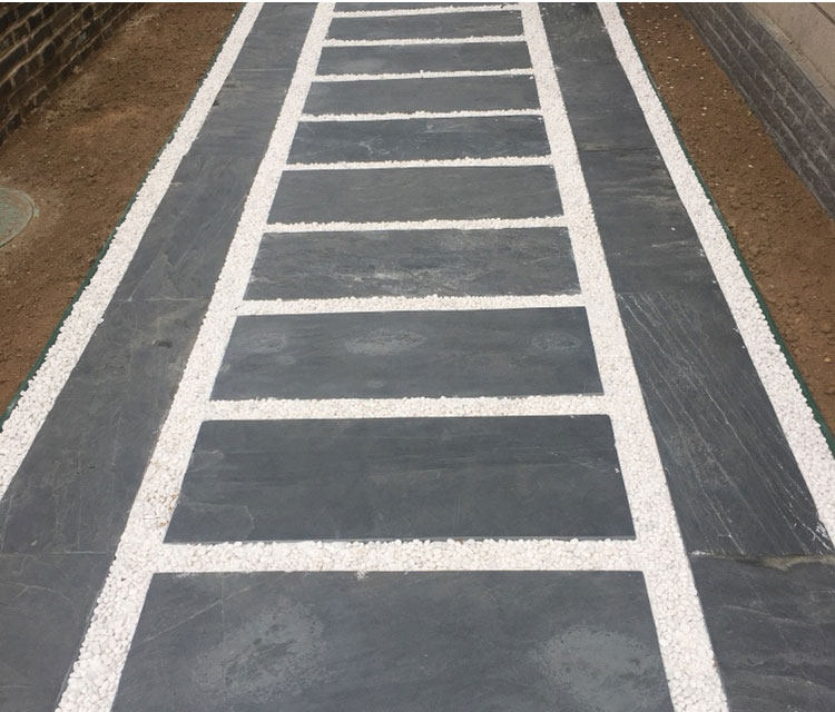 Bluestone Step Step Court Garden Garden Расположение сад на открытом воздухе.