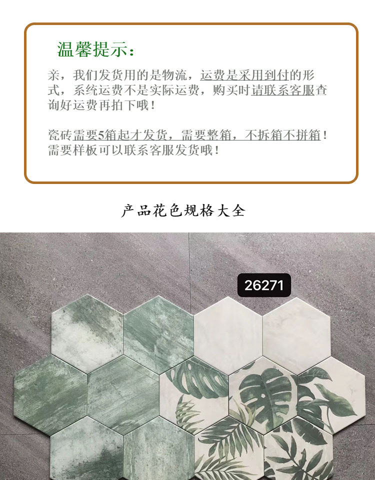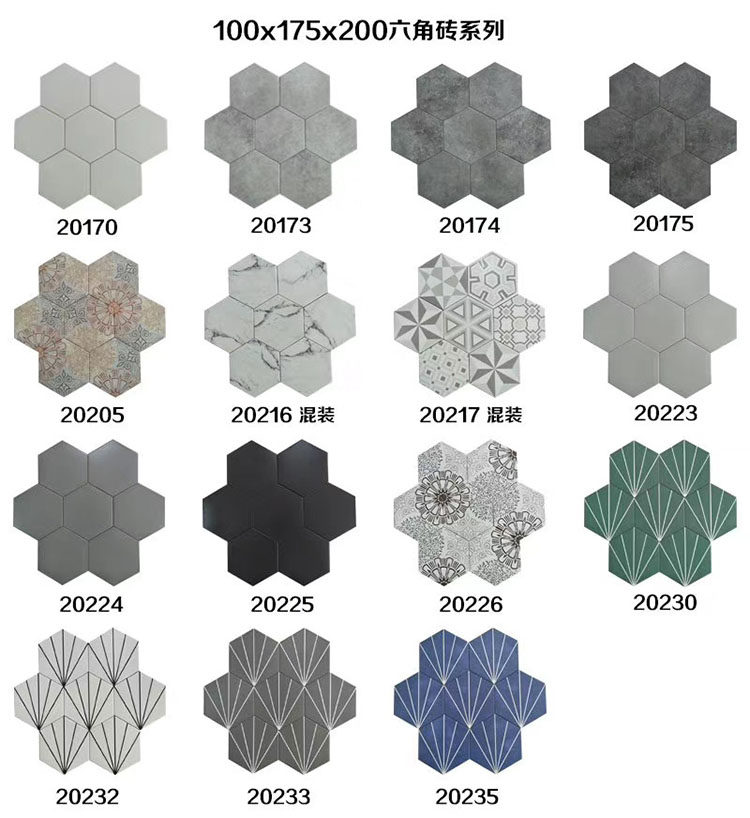 Северная шестиугольная кирпичная плитка 200 × 230 кухонная плитка 300 × 260 ванная комната цветная плитка шестиугольника