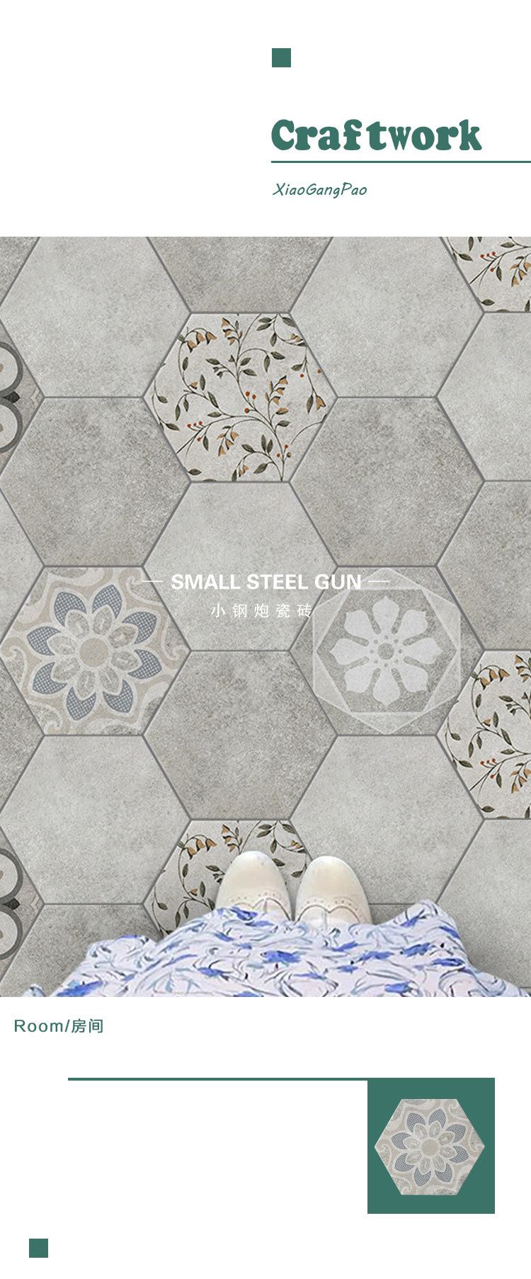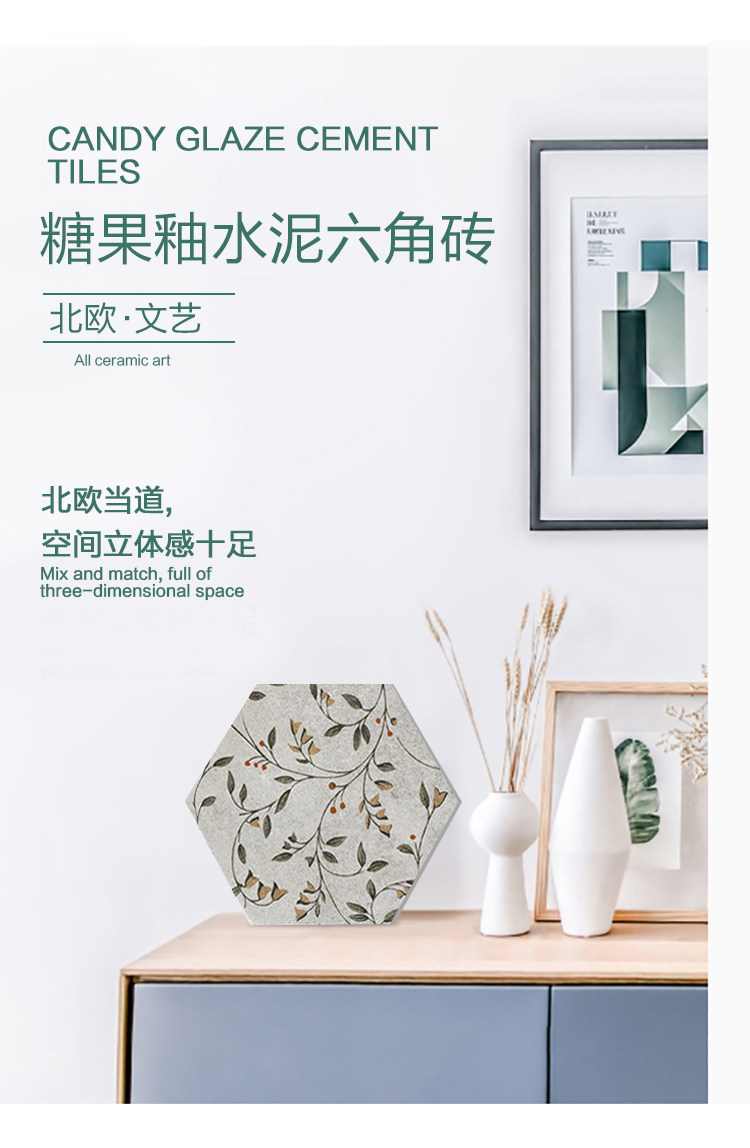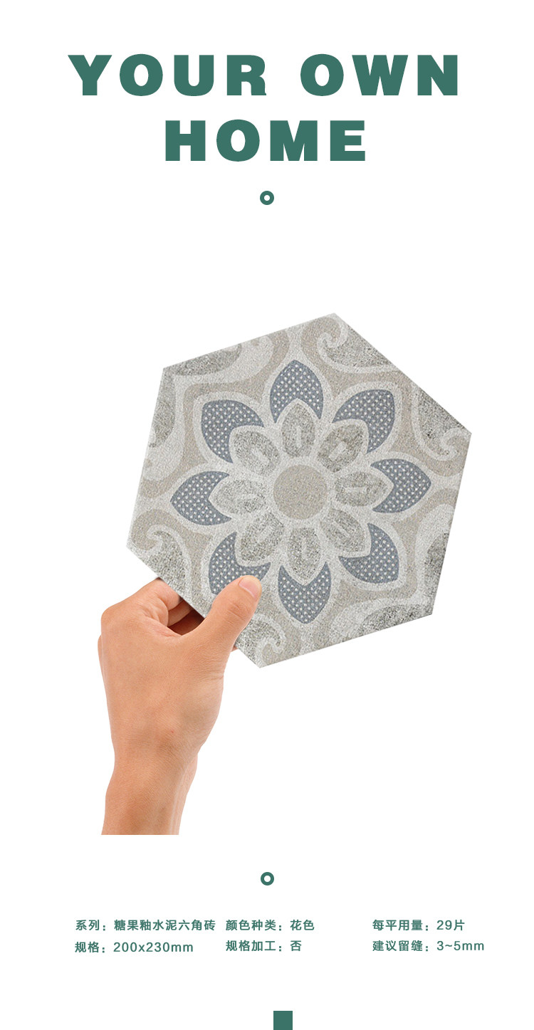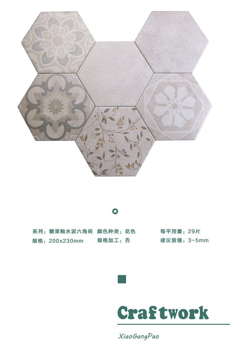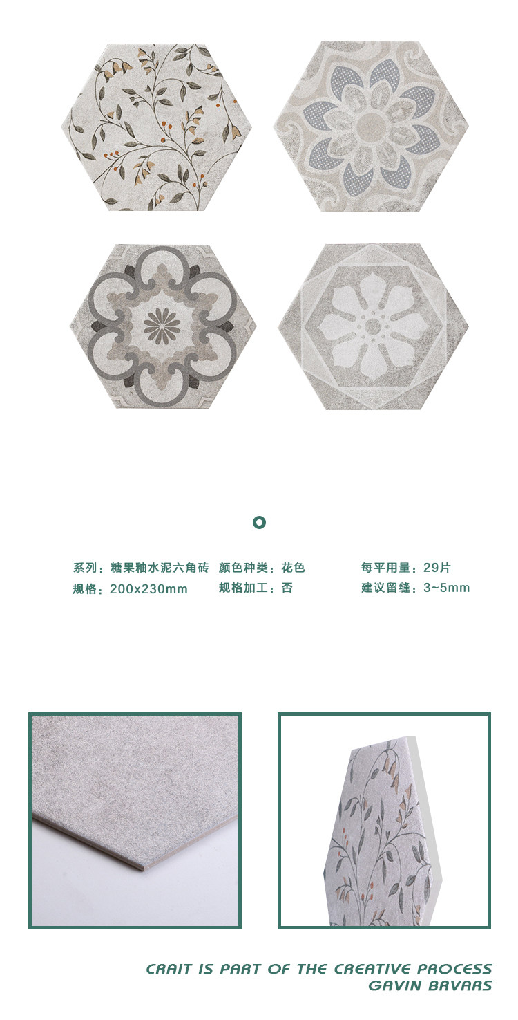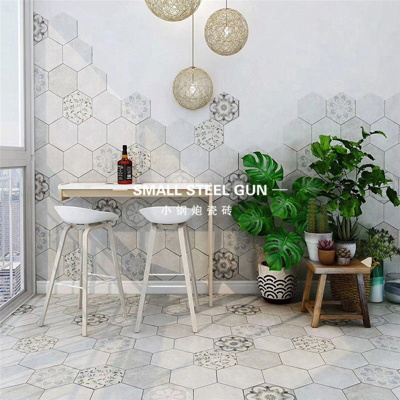 Нордическая ретро цементная шестиугольная кирпичная кухня напольная плитка балкон балкон -конфеты глазурь