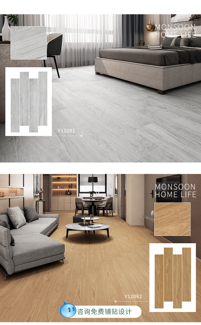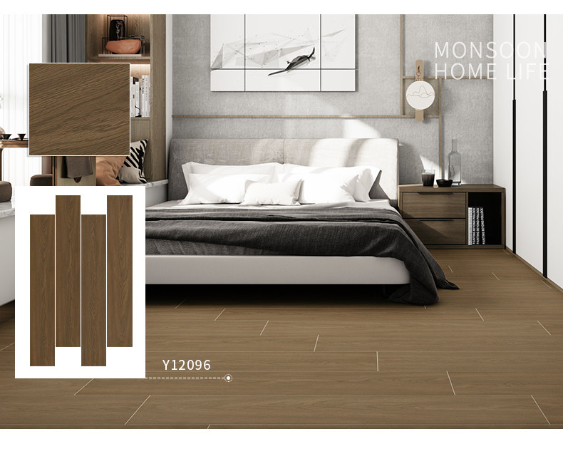 Северная целая фарфоровая деревянная плитка Имитация сплошной деревянной плитки 200x1200 Современная спальня гостиной без стекла антиквариата