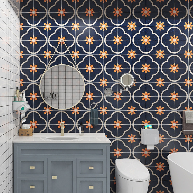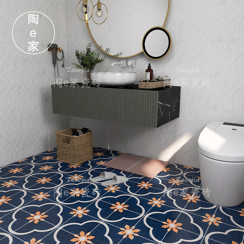 Синяя ретро маленькая цветочная плитка американская плитка для ванной комнаты без скольжения плитка на полу