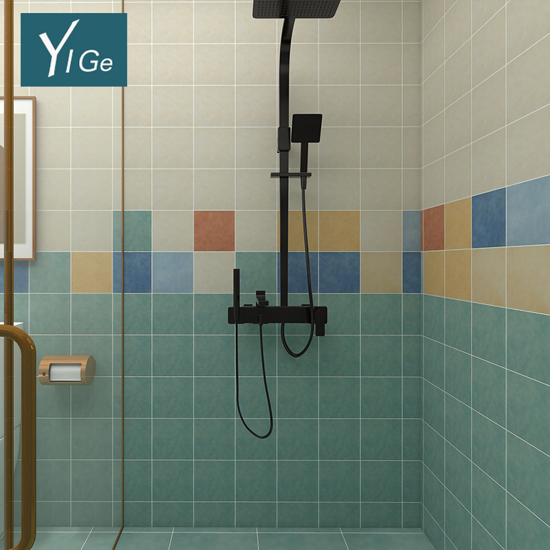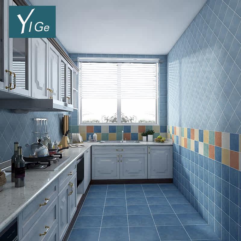 Кухонная туалетная плитка 330x330 голубой синий желтый теплый темно -красный средиземноморский туалетный туалетный туалетный туалет плитка пола