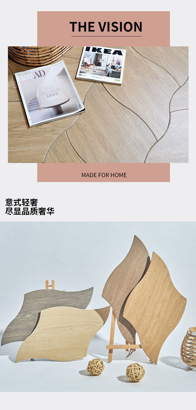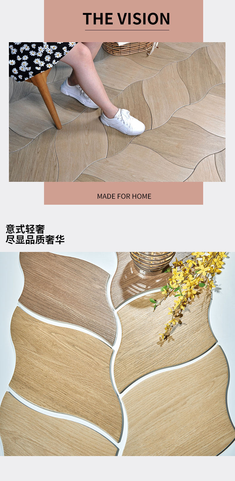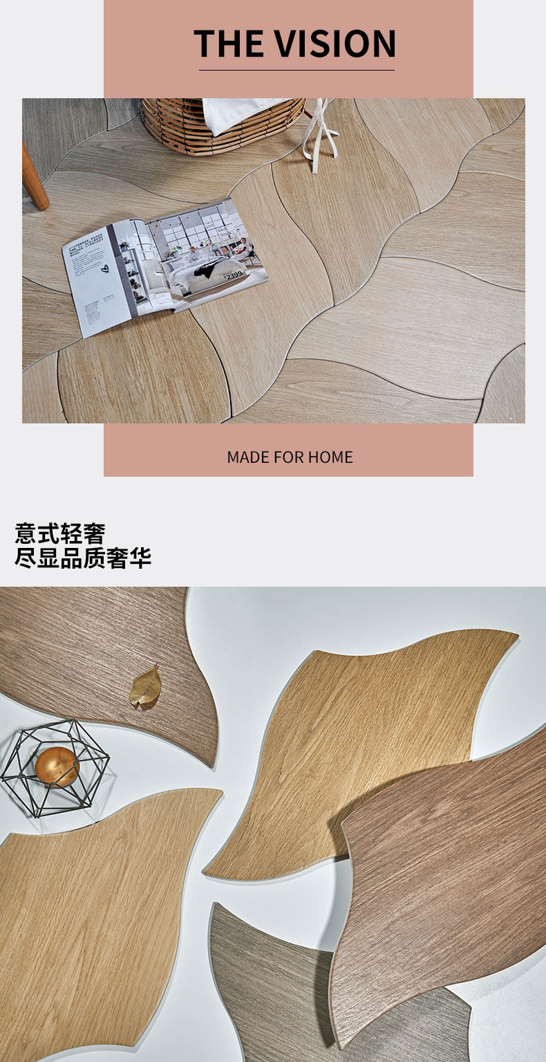Нордическое листовое дерево зерно кирпичное личность анти -деревянную плитку гостиная спальня спальня ресторан инопланетный не складывание плитки на полу