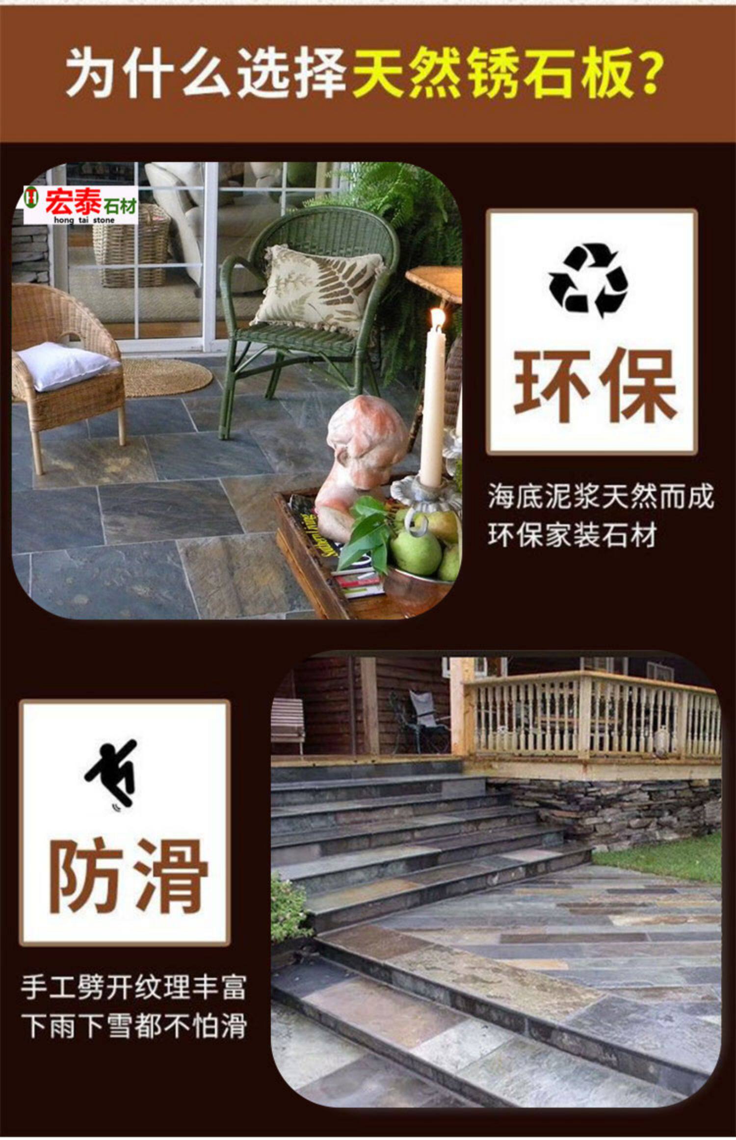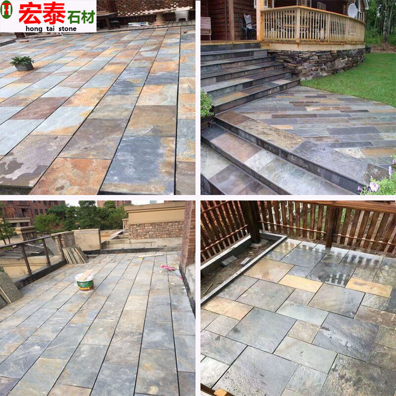 Натуральная ржавчачье -Королевшая зеленая каменная плита двор виллы терраса терраса анти -слабый антикварный камень на открытом воздухе