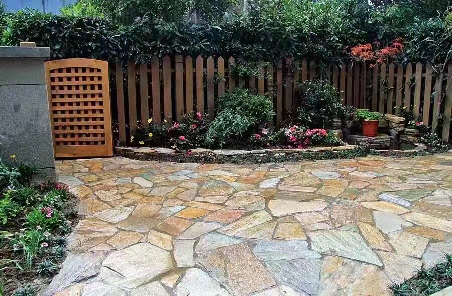 Натуральная ржавчина черная нерегулярная дробление и случайный сад сад квадрат зеленая плита плита плитка прунд ландшафтный пленка сланец