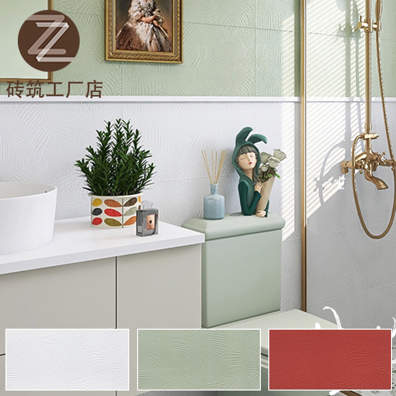 Французские европейские ретро-обои с вогнутой и выпуклой поверхностью, имитация растительной настенной плитки 300X600, плитка для ванной комнаты, балкона, зеленая
