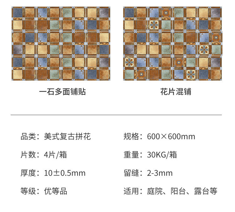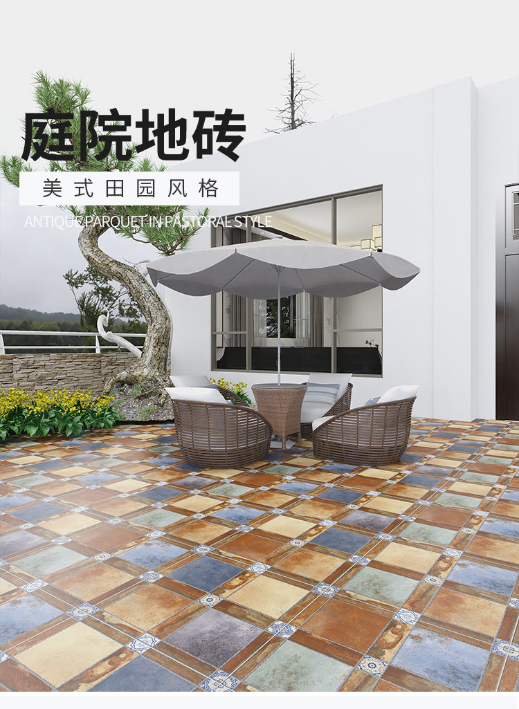 Американская ретро -во дворе полы плитка 600x600