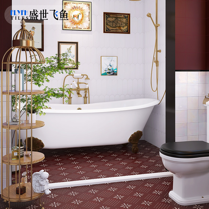 Французские ретро -плитки в ванной комнате ванная кухня плитка туалетная стена настенная плитка балкон -плитка красная плитка пола