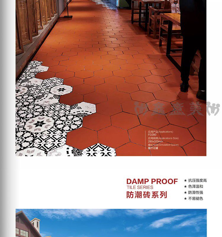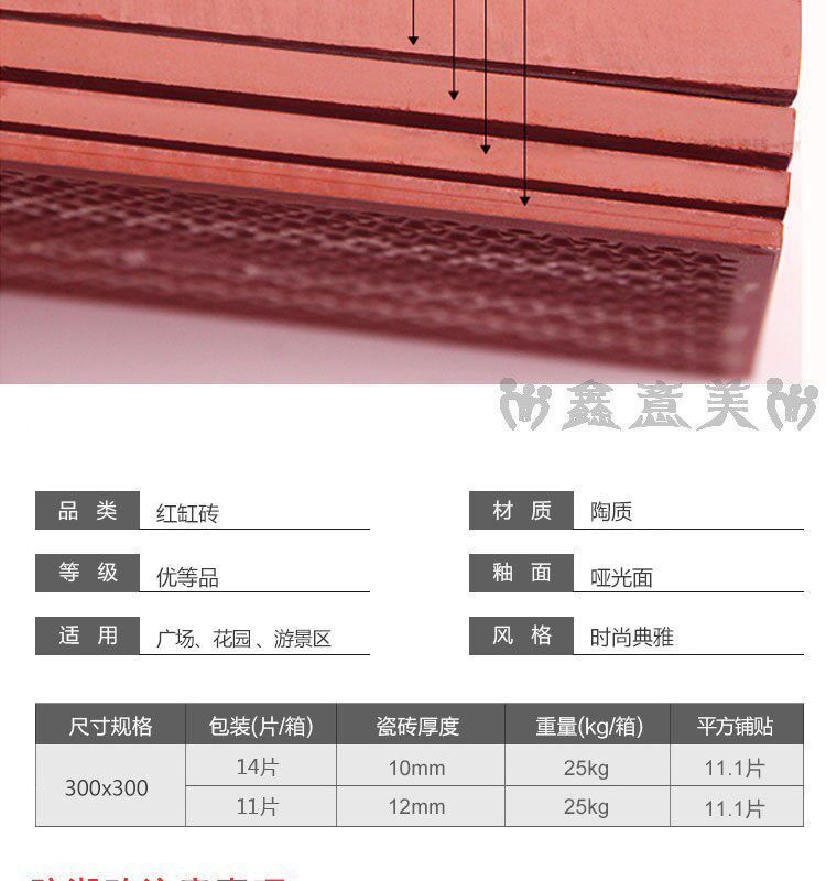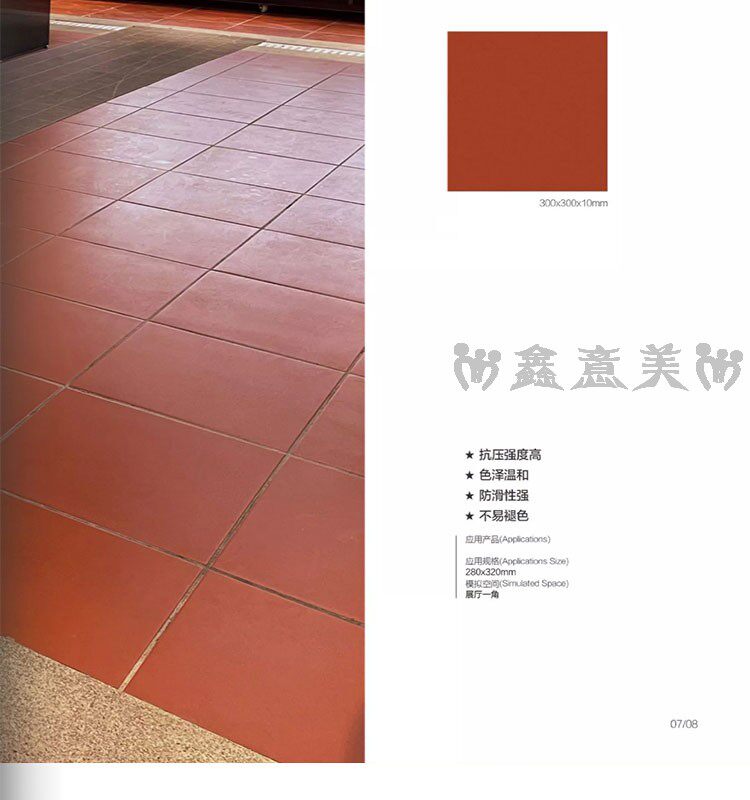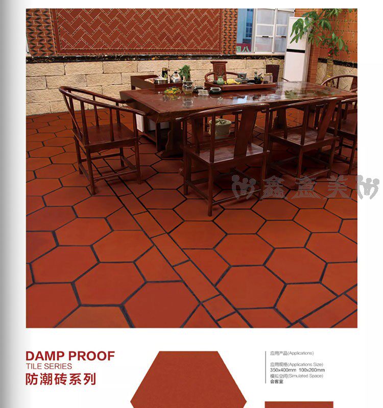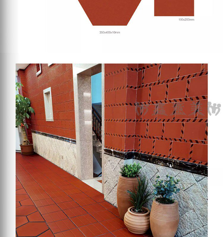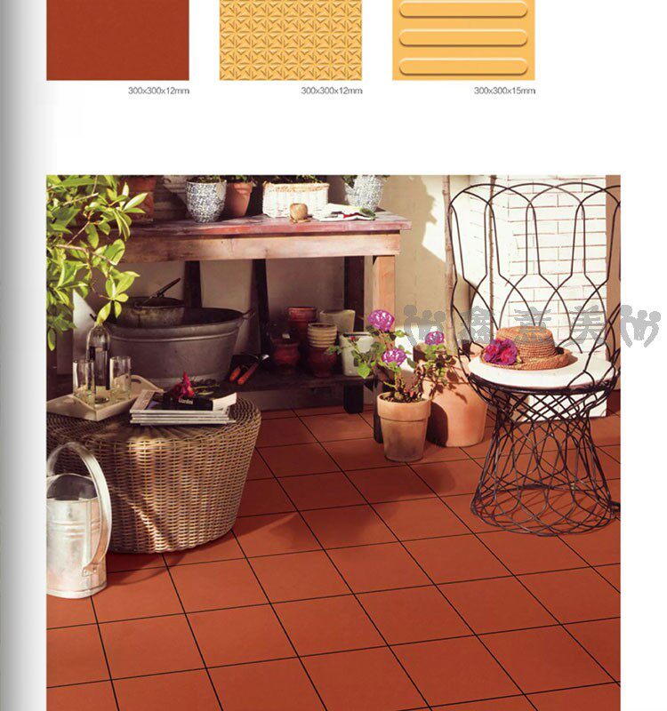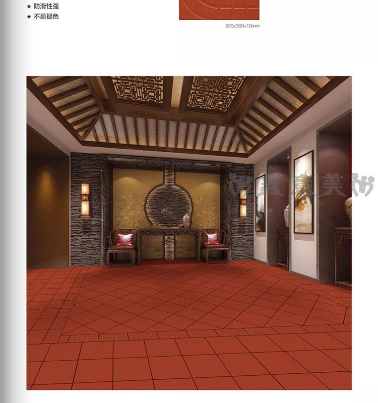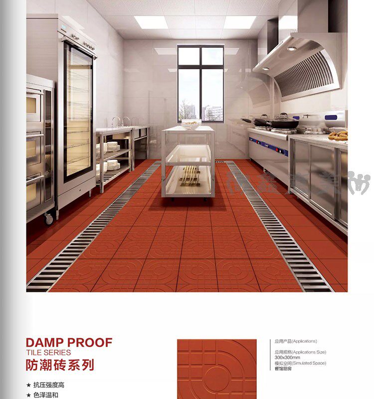 Красная кирпичная влажность -Проницаемый прилив 300x300 мм отель Ресторан Ресторан балкон туалетная кухня кухня анти -хлопья -поглощающая вода -поглощающая маленькая плитка на полу