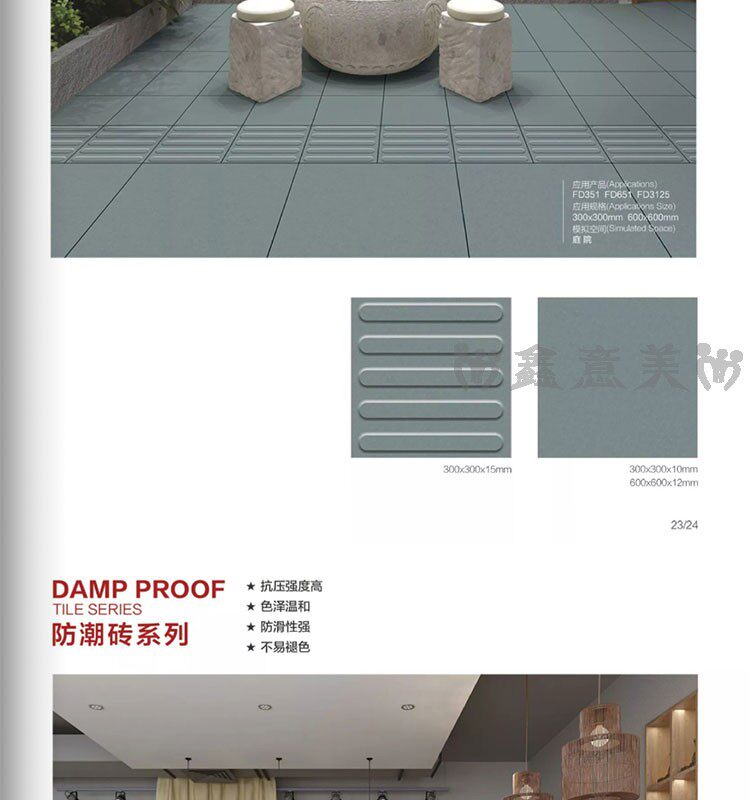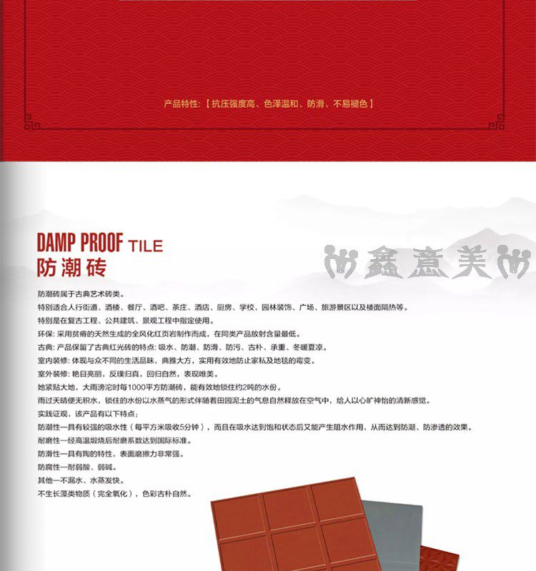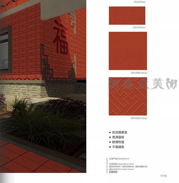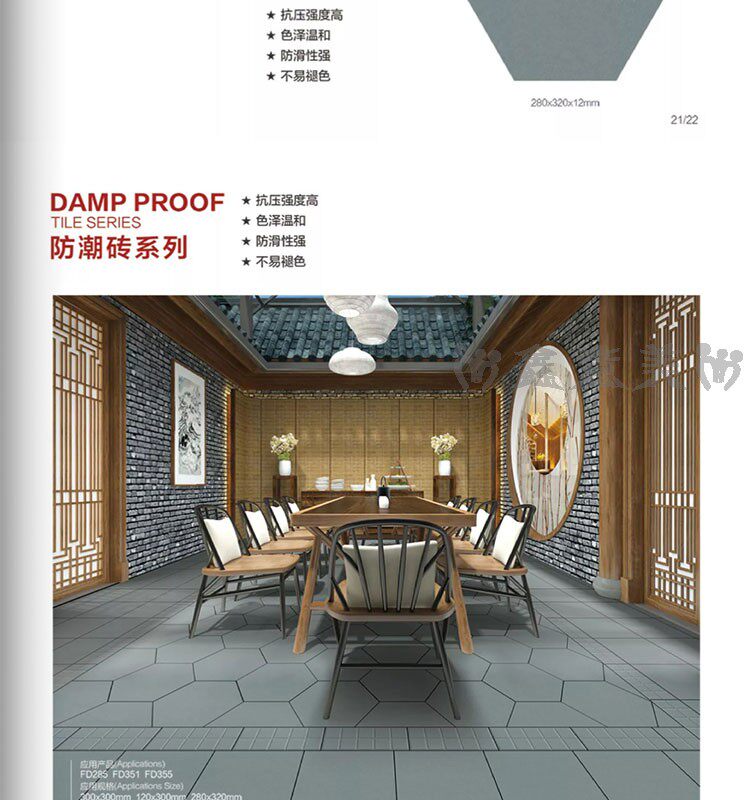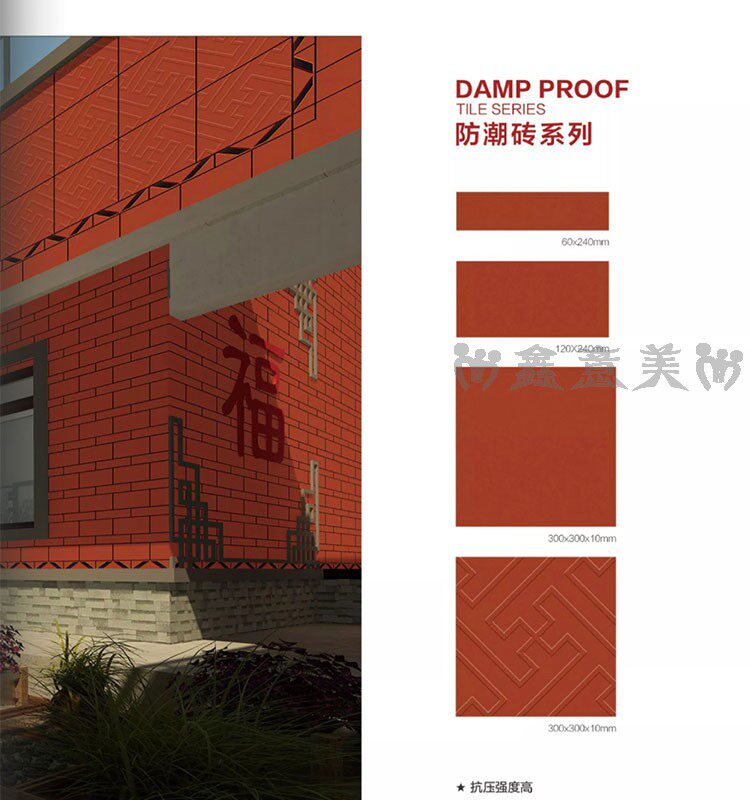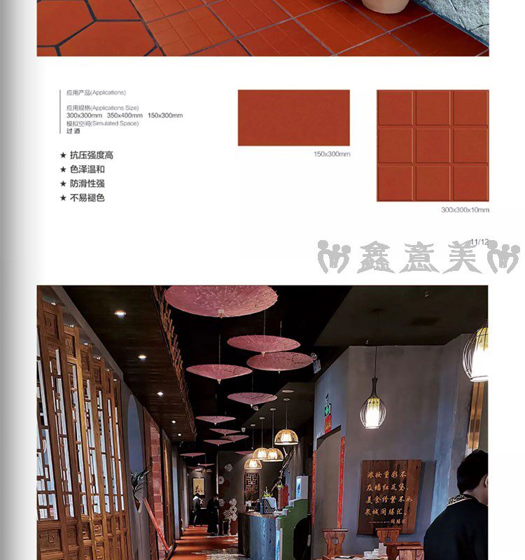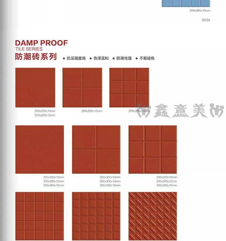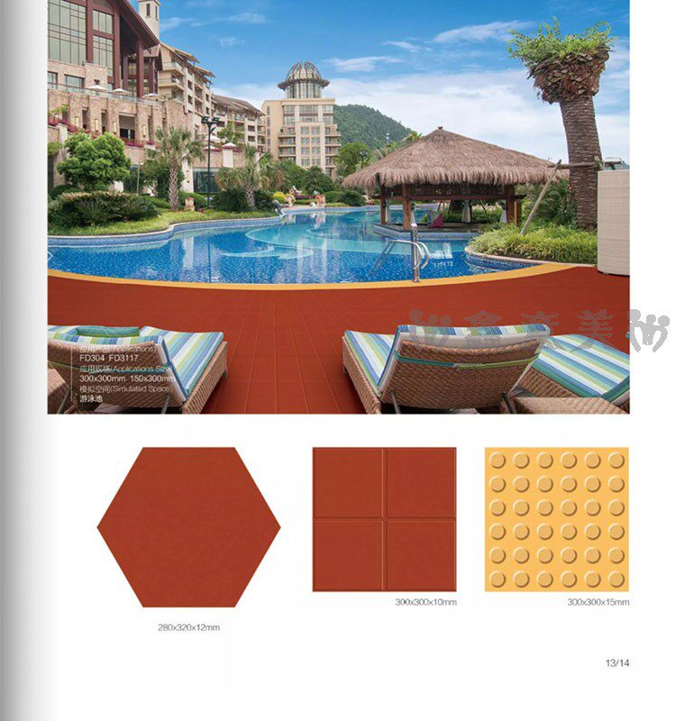 Красная кирпичная влажность -Проницаемый прилив 300x300 мм отель Ресторан Ресторан балкон туалетная кухня кухня анти -хлопья -поглощающая вода -поглощающая маленькая плитка на полу