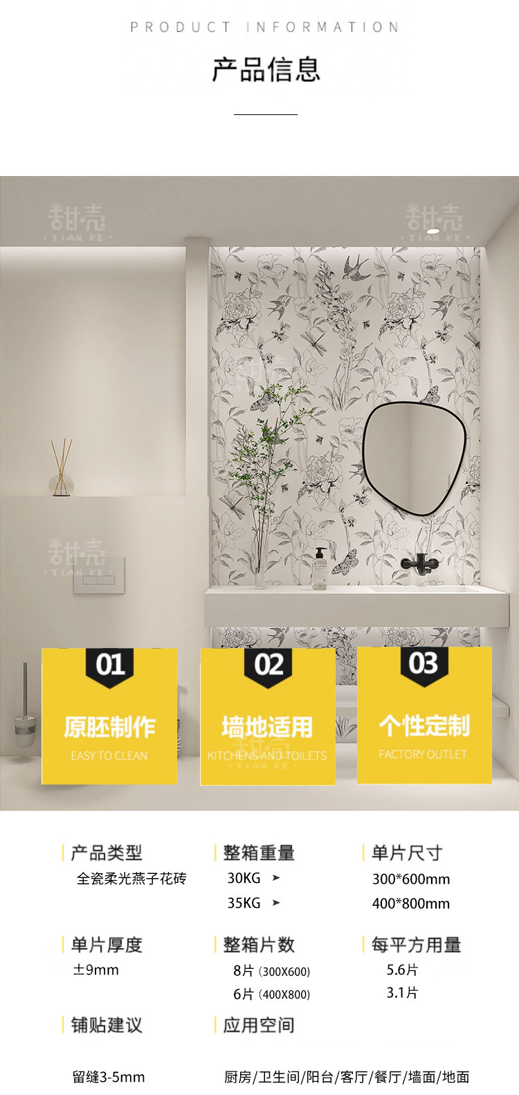 Глотать цветочные плитки 400x800 ванная комната и кухонные настенные плитки