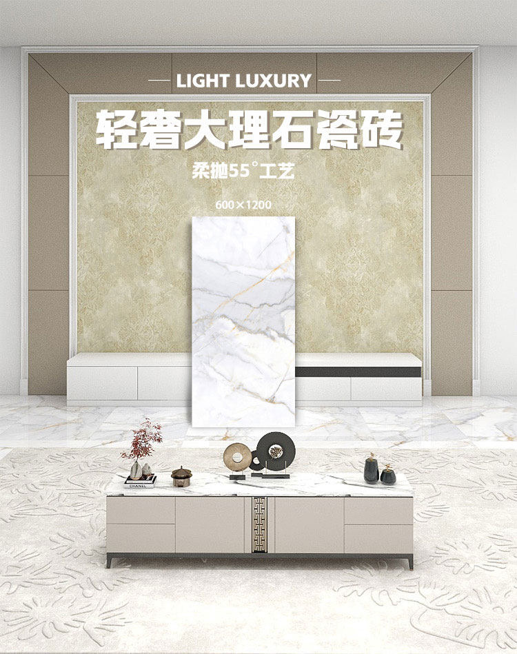 Имитация Мрамора 55 ° Мягкая плитка роскошная каменная плитка 600 × 1200 гостиная ресторан.