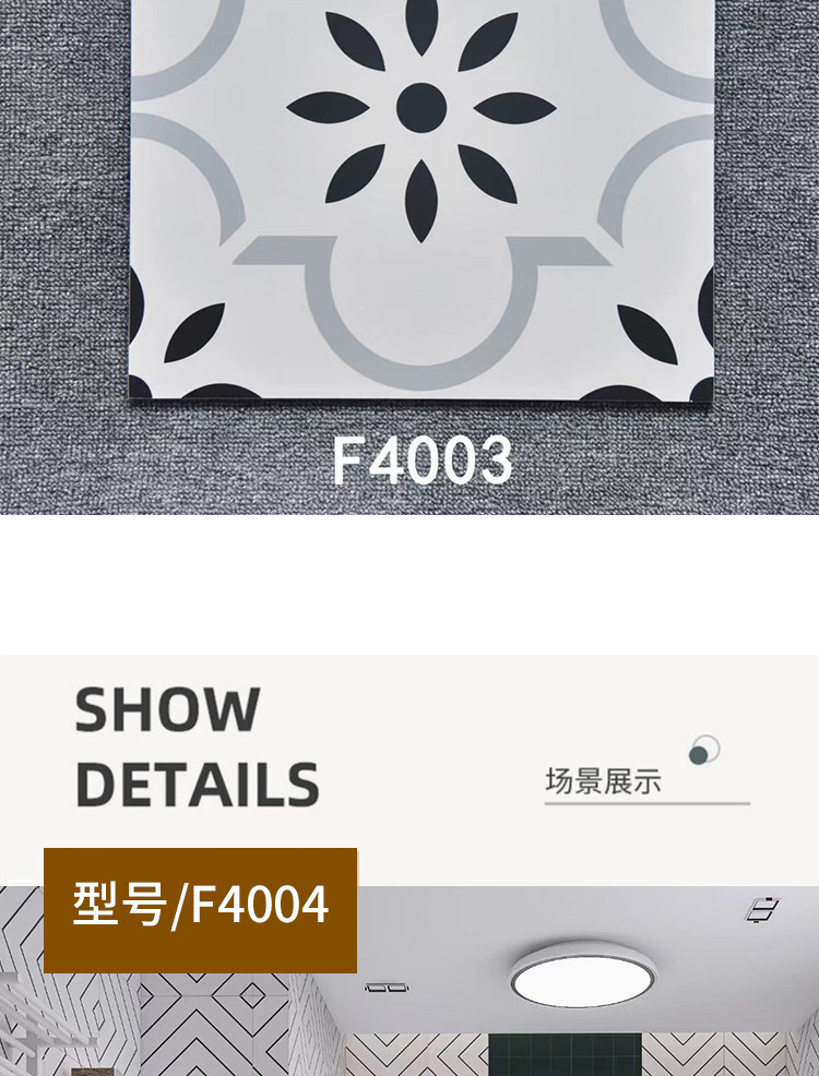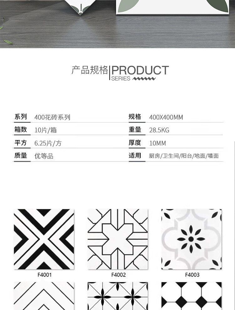 Новый продукт Foshan черно -белый цвет кирпич 400x400 кухонный балкон балкон домиз антикварная плитка головоломка