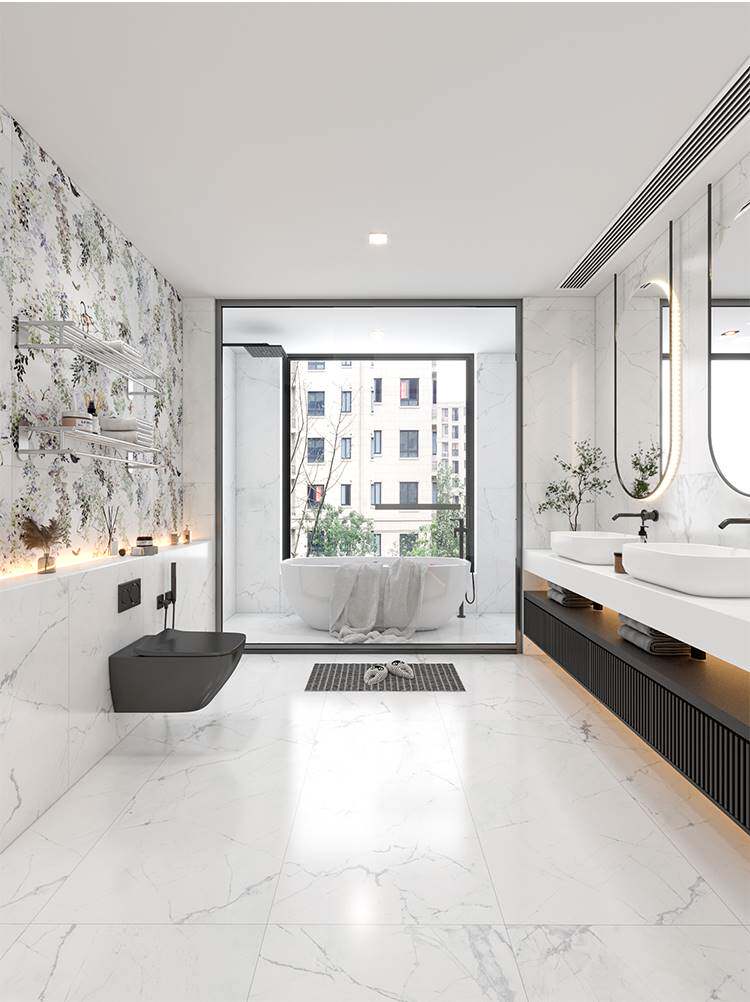 Французская мягкая лампа Bulgari мраморная плитка 600x1200 гостиная ванная комната кухонная плитка ретро -ретро Большой белый