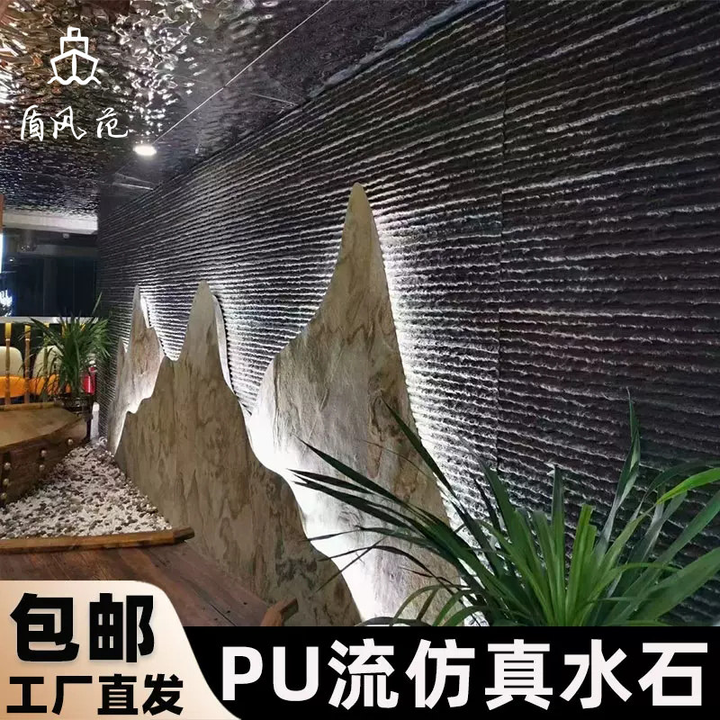 Симуляция течет вода Pu камень кожаный легкий художественный кирпичный кирпичный культура камень отель вилла фоновый фон Внешняя стена крытый двор водный занавес
