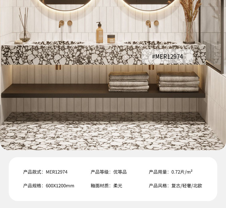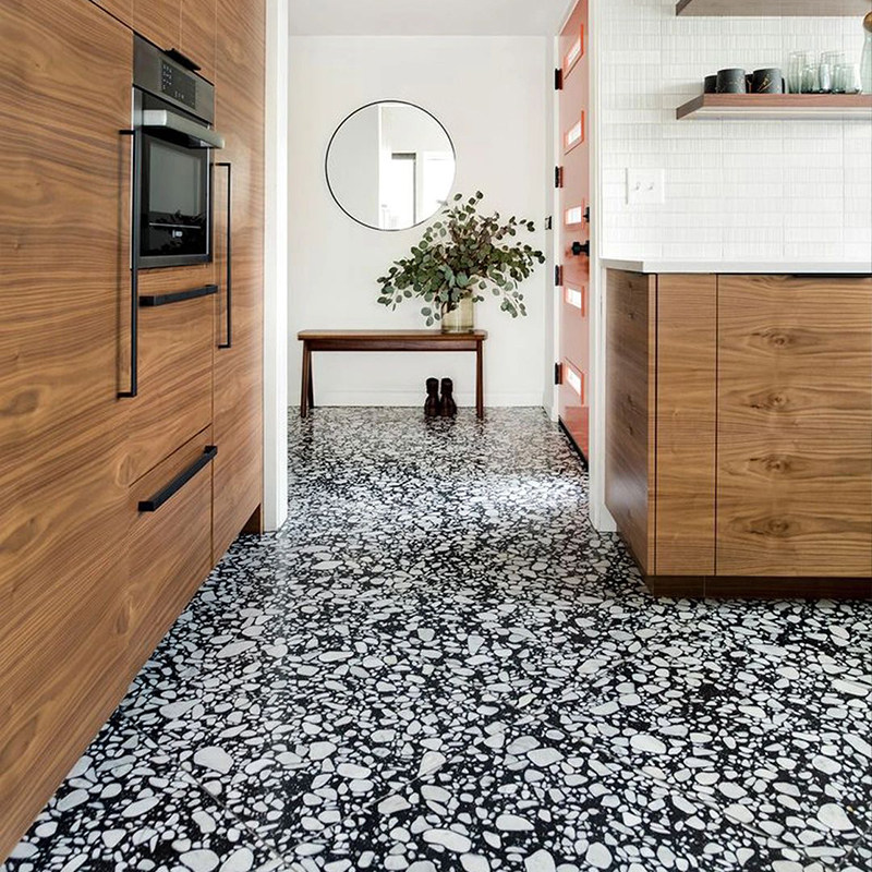 Большая частица черная терраццо для ванной комнаты в средневековом стиле кухонные плитки ретро -магазин одежды мягкая плитка напольная плитка