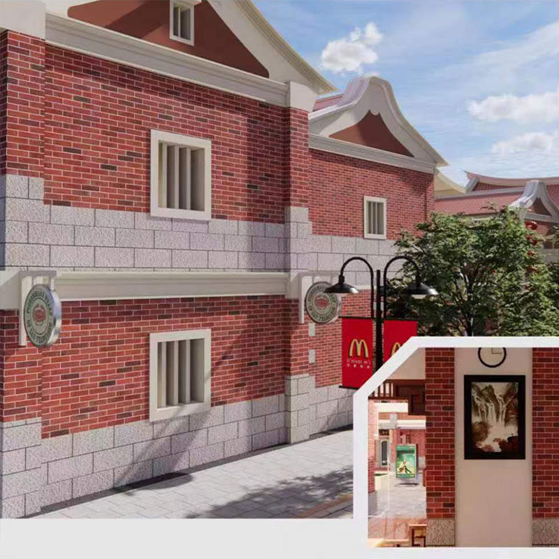 Красная ретро уличная антикварная вилла, ископаемые