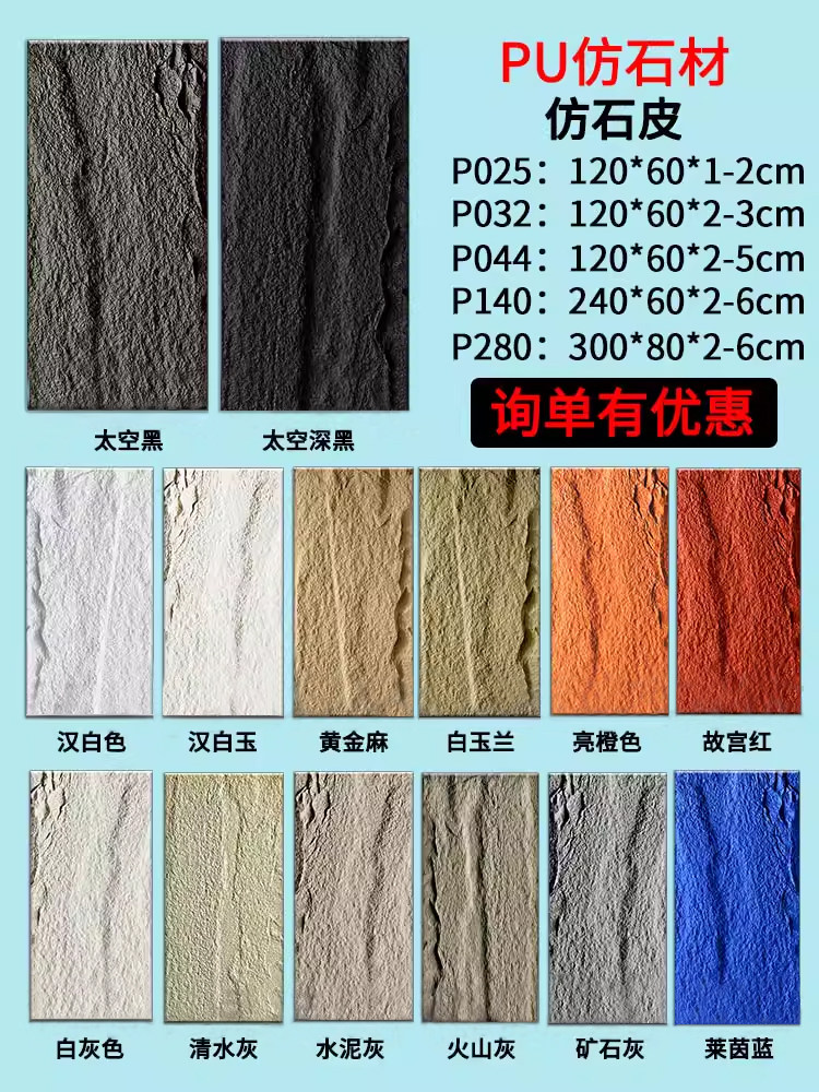 - Больше размеров больших плит [полиуретановый камень] При размещении заказа обратите внимание на цвет. См. список индивидуальных размеров.