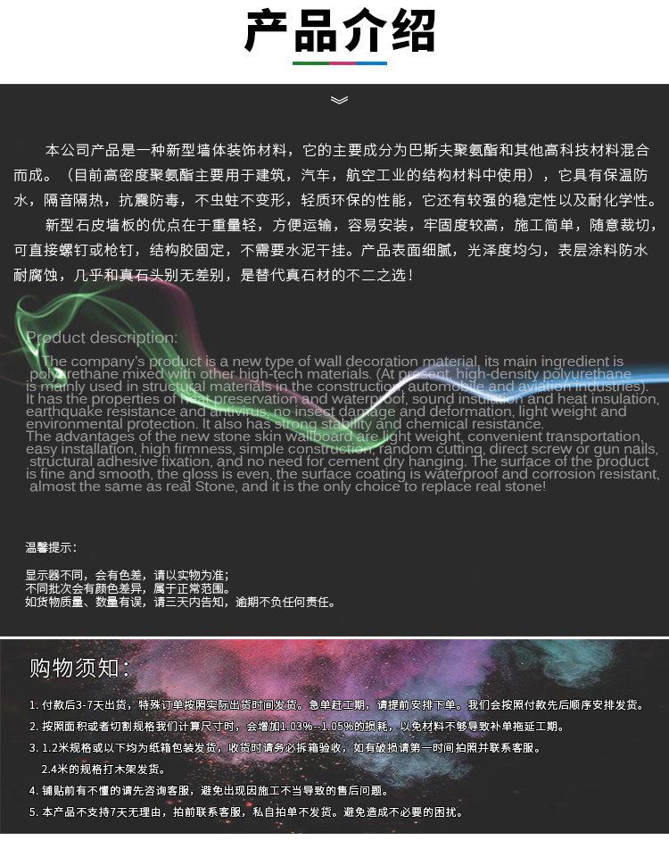 | Цвет: | Легкие плитки 2400*400 мм, Камень 2400*300 мм, Камень 2400*450 мм, Камень 2400*600 мм, Плоская текстура 2400*800 мм, Вогнутая и выпуклая текстура 2400*800 мм, Камень 1200*1800 мм, Камень 1200*3000 мм, Рок -плита 600*600 мм, Плитка 240*400 мм |