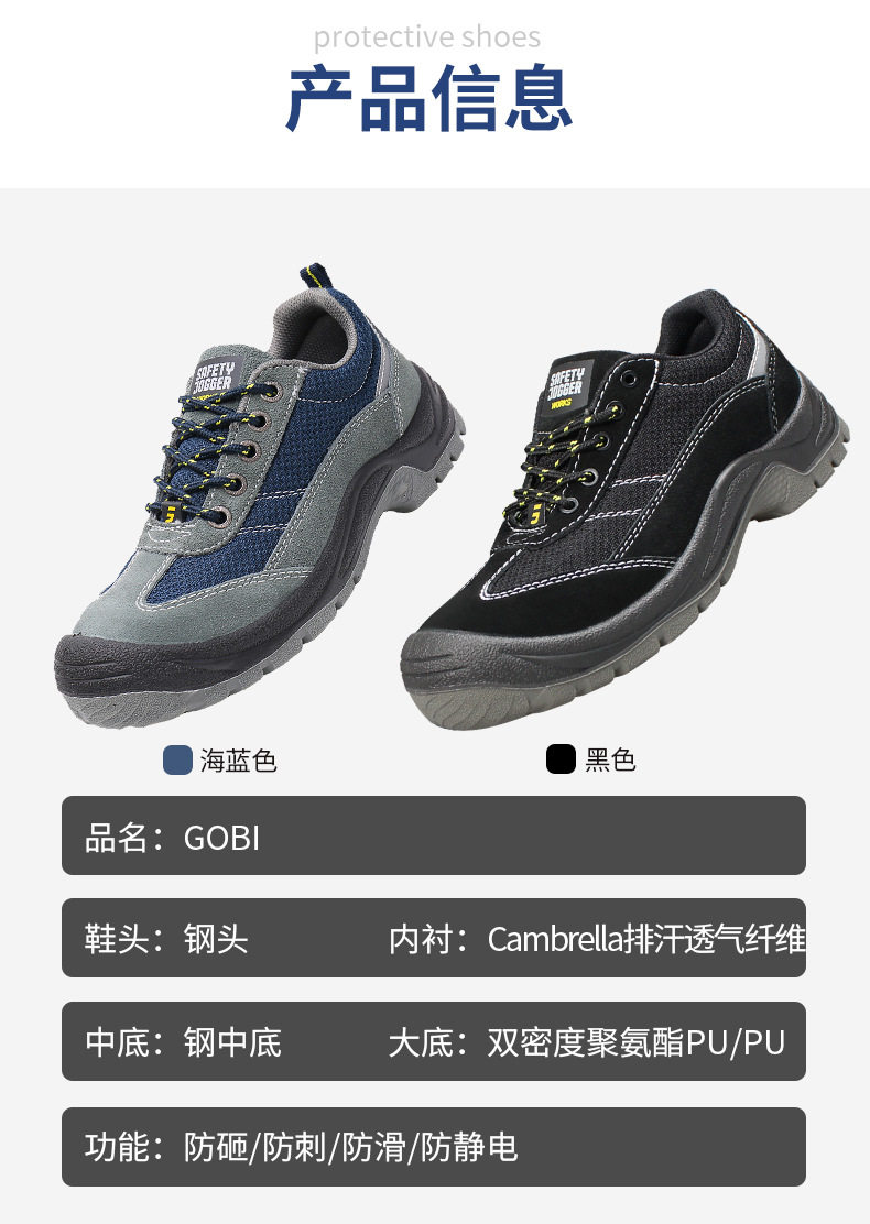 鞍琸宜 Защитная обувь Safety Jogger GOBI, противоударная, противоударная, антистатическая, легкая и дышащая защитная обувь.